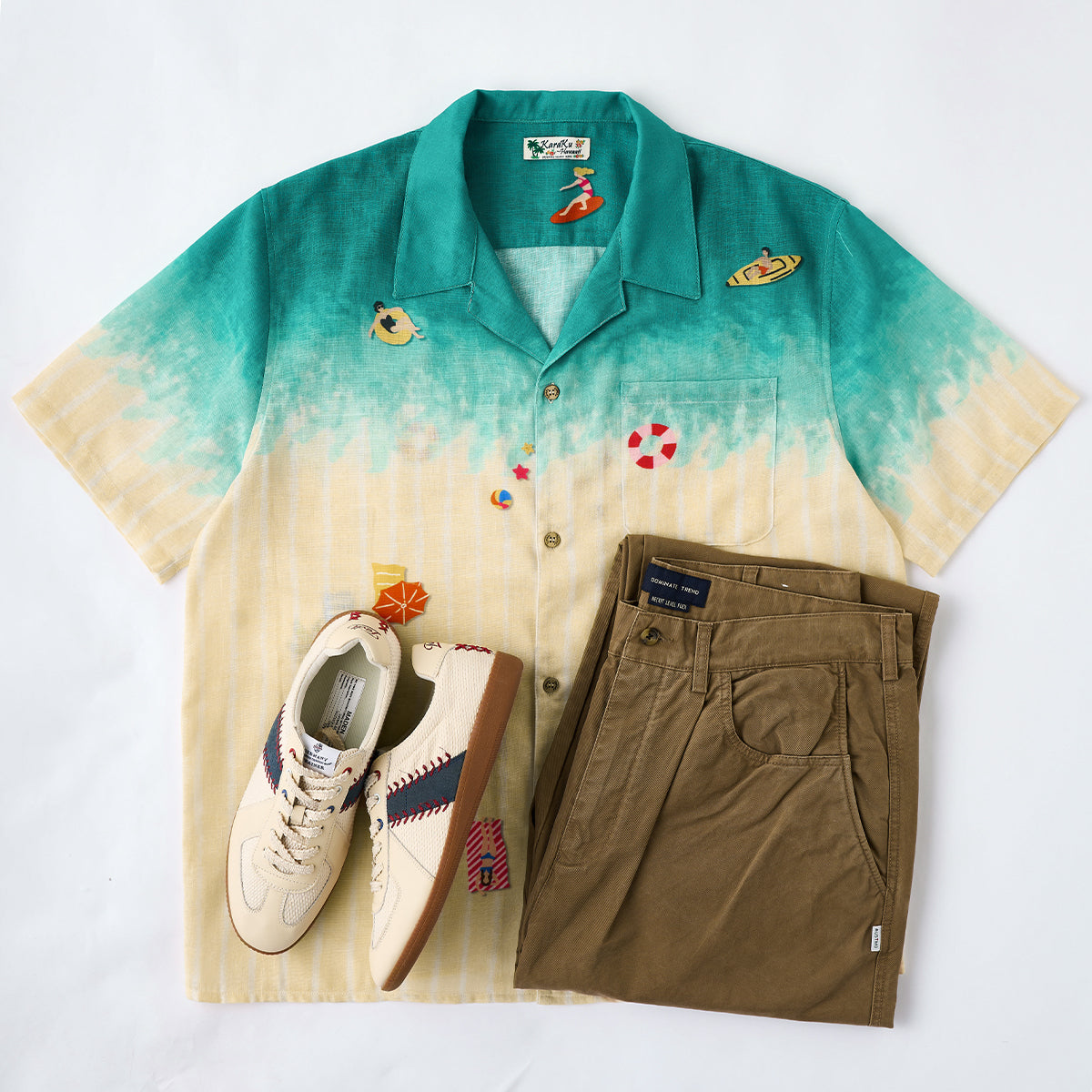 치노 팬츠나 구르카 샌들, 혹은 화이트 스니커즈와 매치하면 도회적인 리조트 스타일을 완성할 수 있습니다.