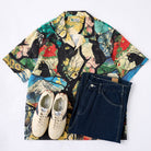 우키요에 스타일 올오버 프린트 알로하 셔츠입니다. 각 계절을 누비는 흑묘의 모습을 섬세한 우키요에 터치로 표현했습니다.