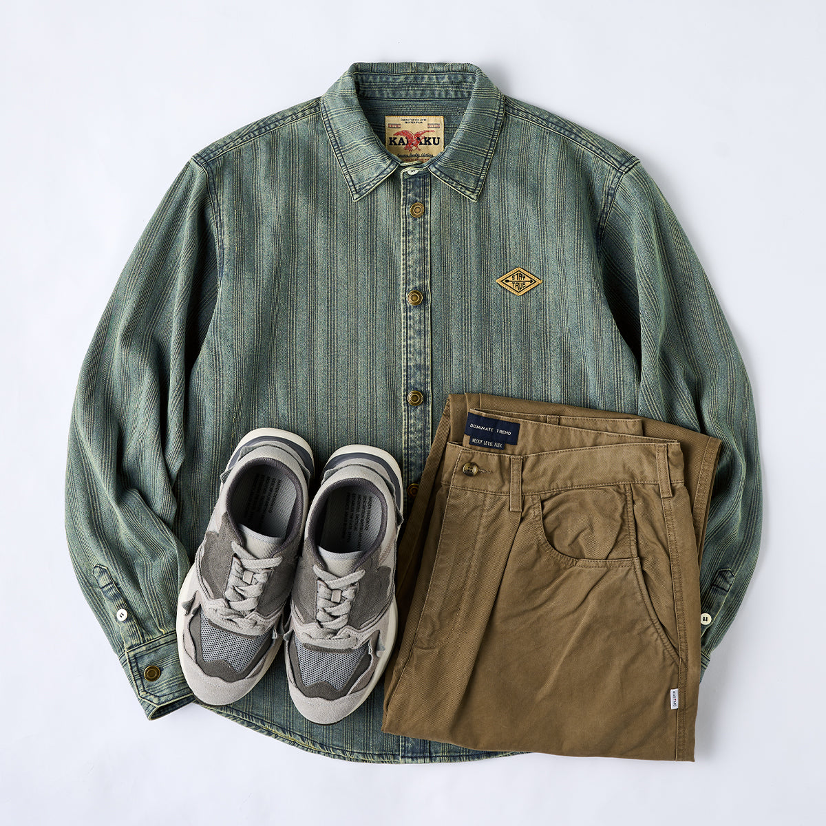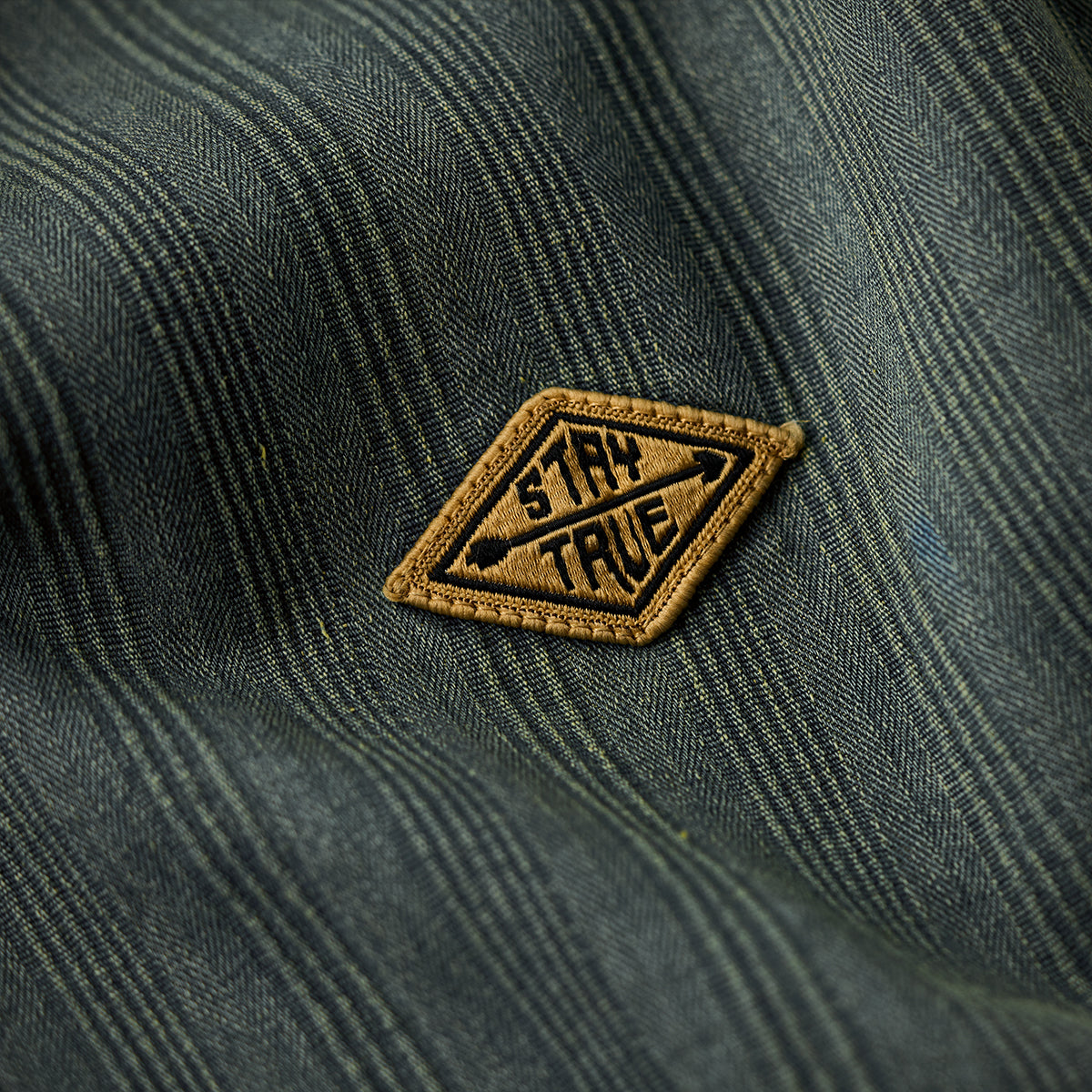 【사전예약】「STAY TRUE」자수 와펜 스트라이프 무늬 긴팔 데님 셔츠