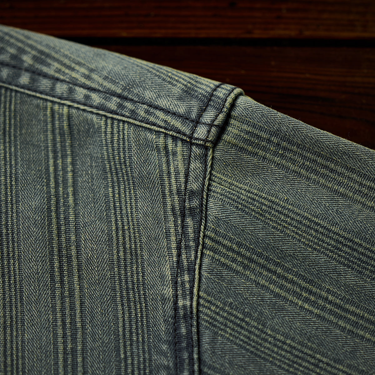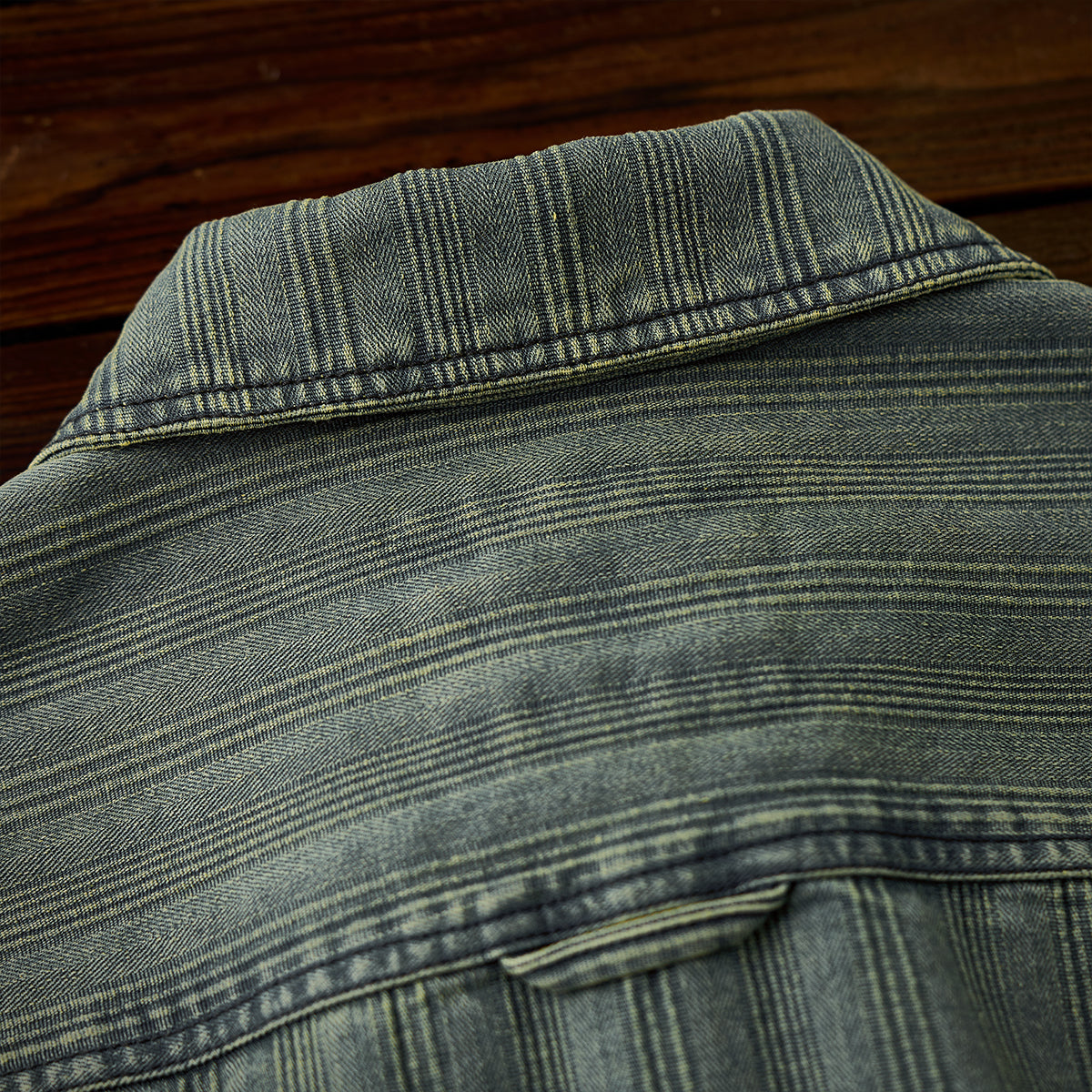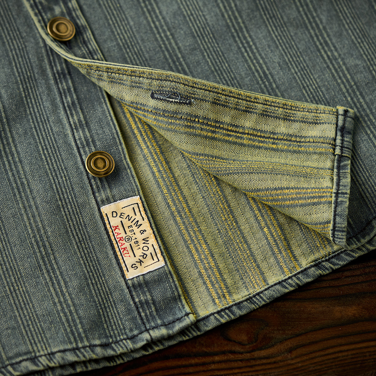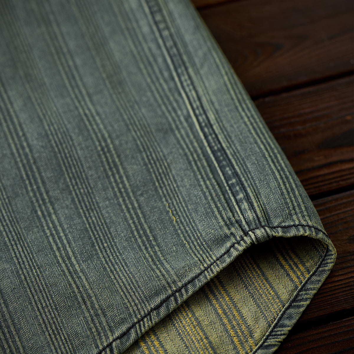 스트라이프 무늬가 레트로 데님 원단에 직조되어, 빈티지한 멋과 고급스러움을 동시에 느낄 수 있습니다.