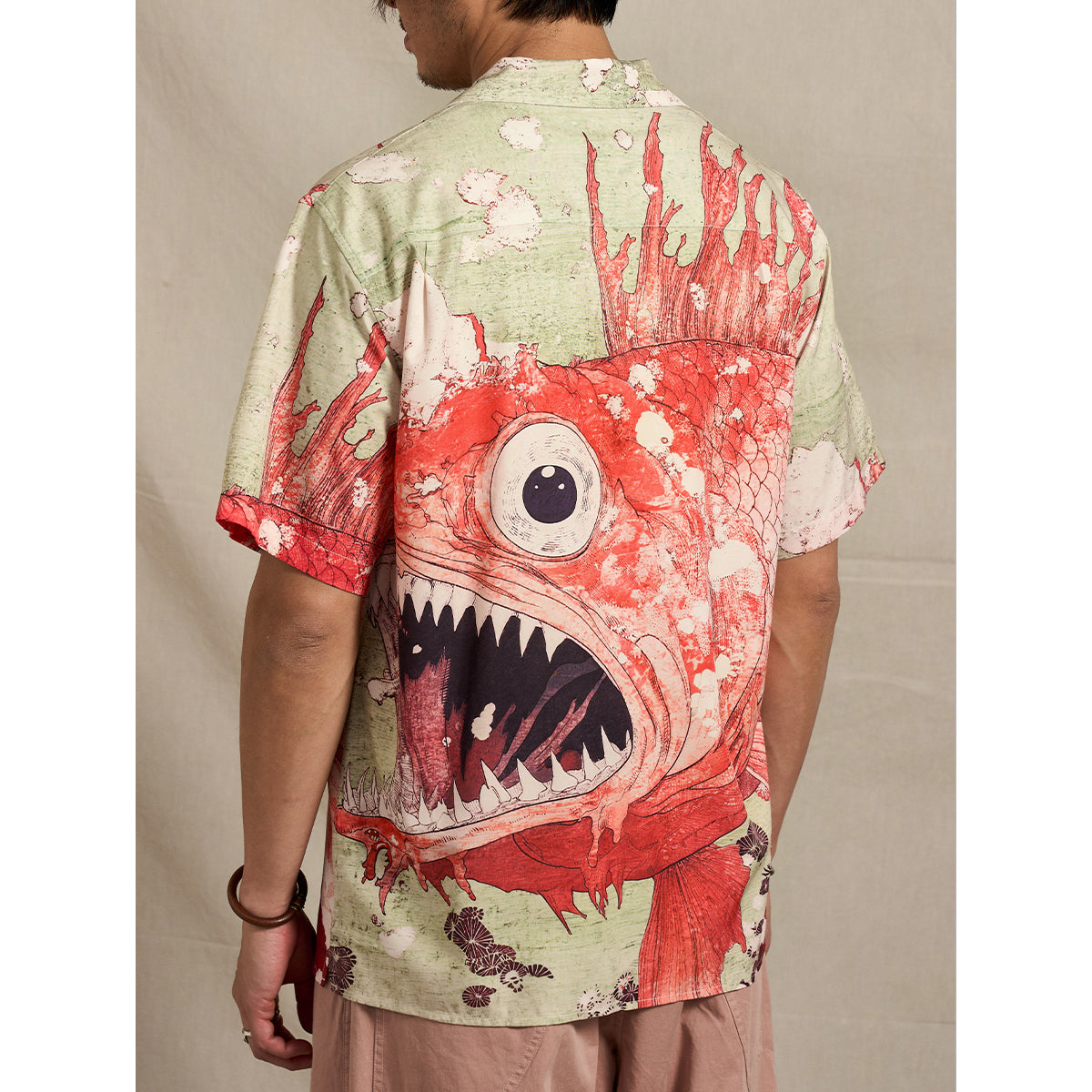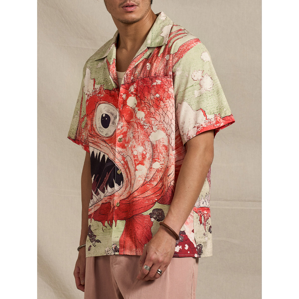 「세찬 물결 속 붉은 잉어」우키요에 프린트 알로하 셔츠