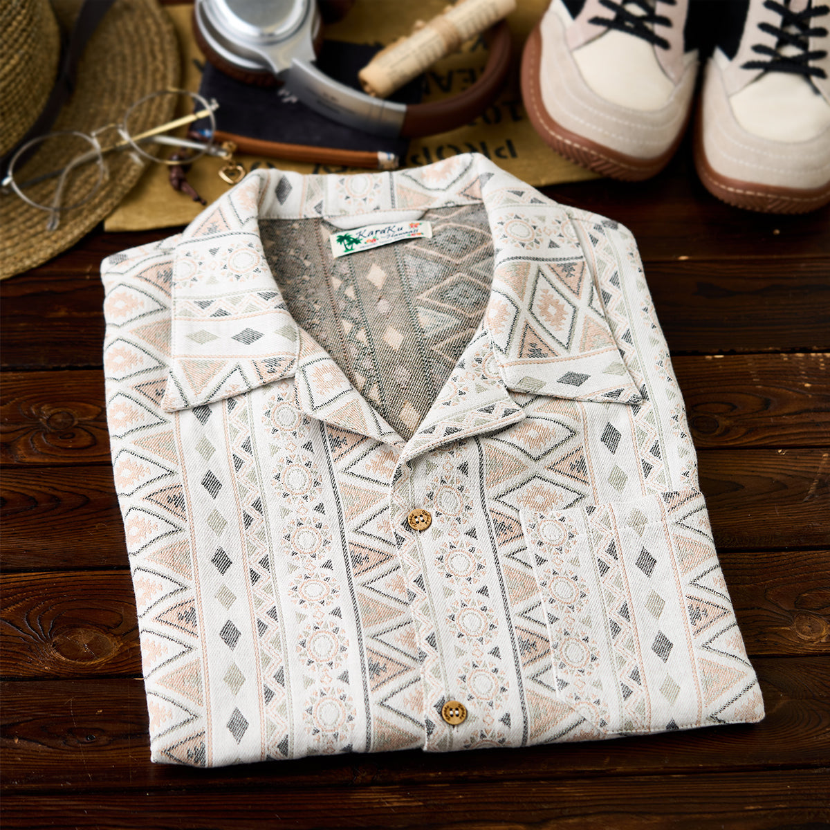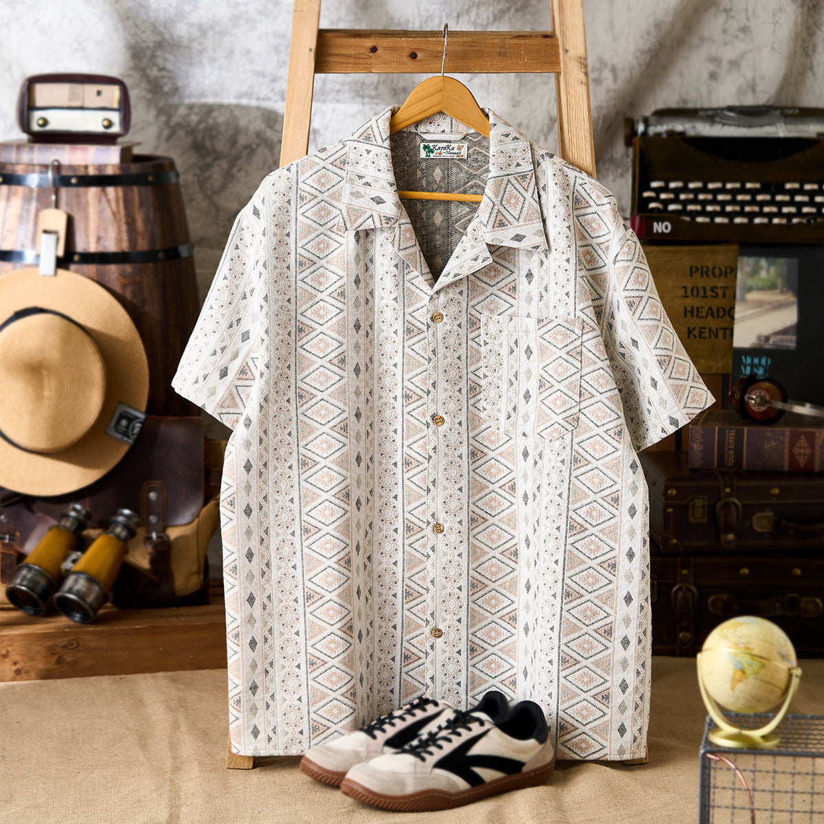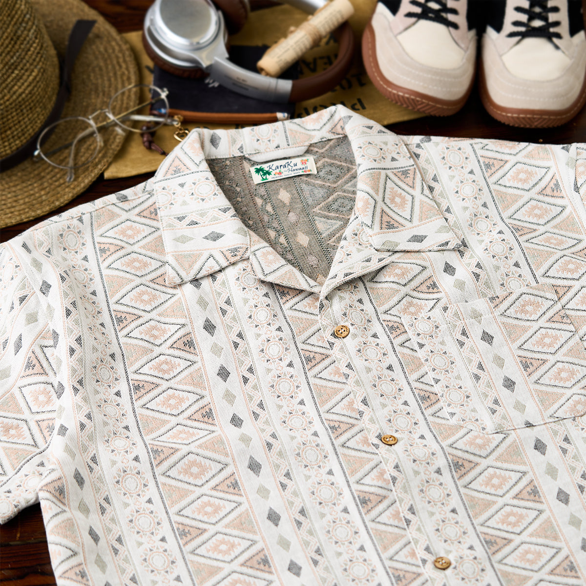 【사전예약】에스닉 자카드 직조 텐셀 혼방 쿠바 카라 셔츠