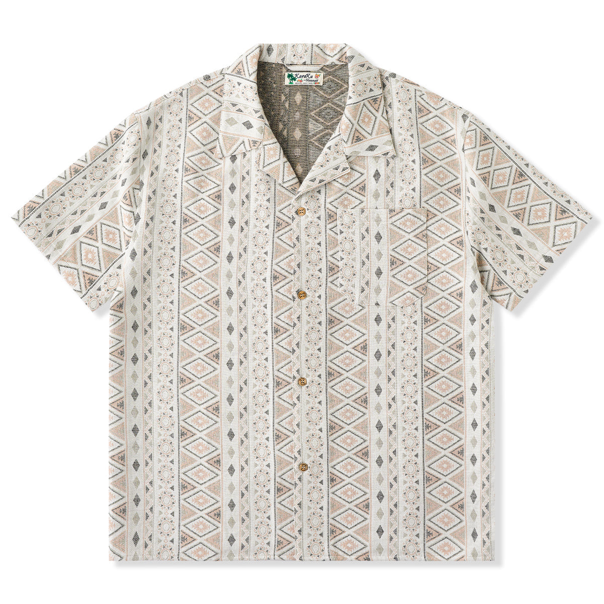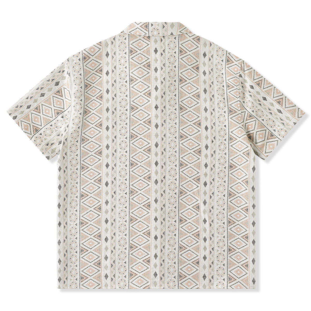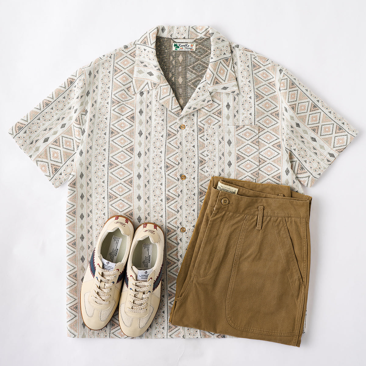 【사전예약】에스닉 자카드 직조 텐셀 혼방 쿠바 카라 셔츠