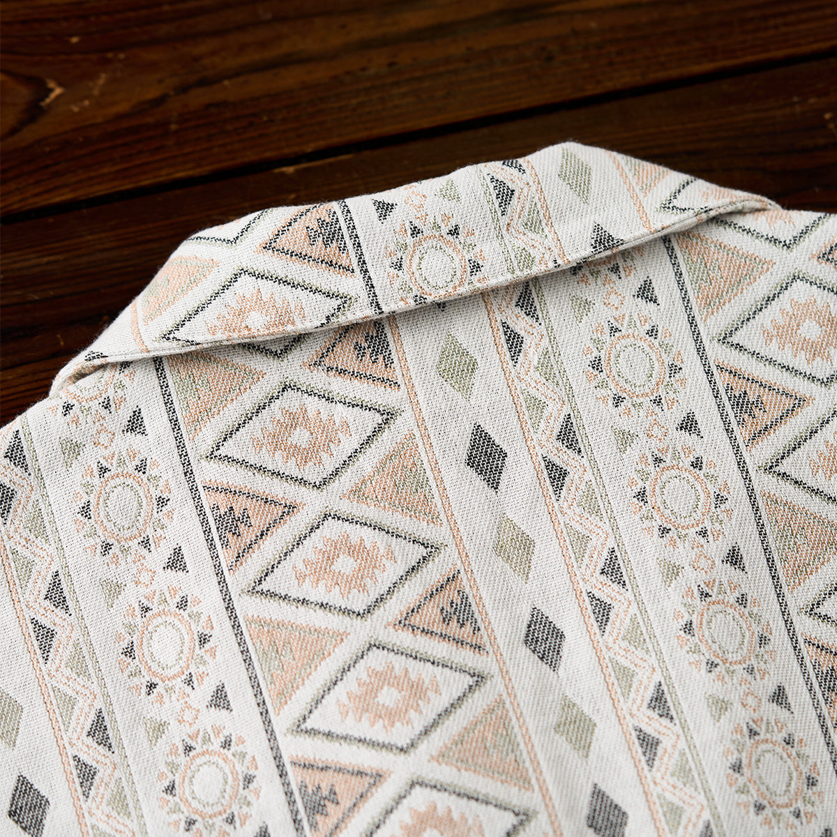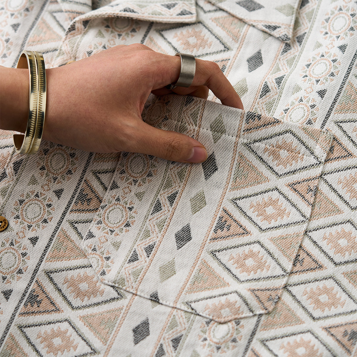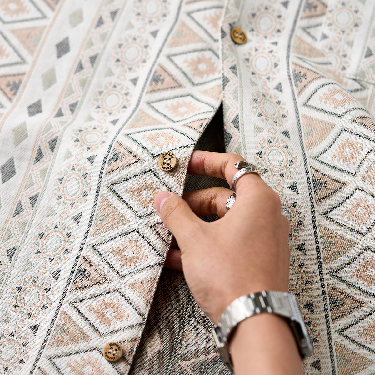 에스닉 패턴을 표현한 자카드 직조 원단을 사용해 조직감에서 오는 은은한 입체감이 고급스러운 분위기를 더해 준 셔츠입니다.