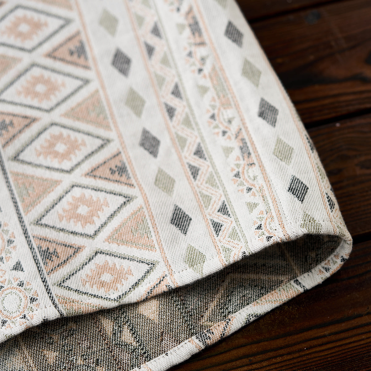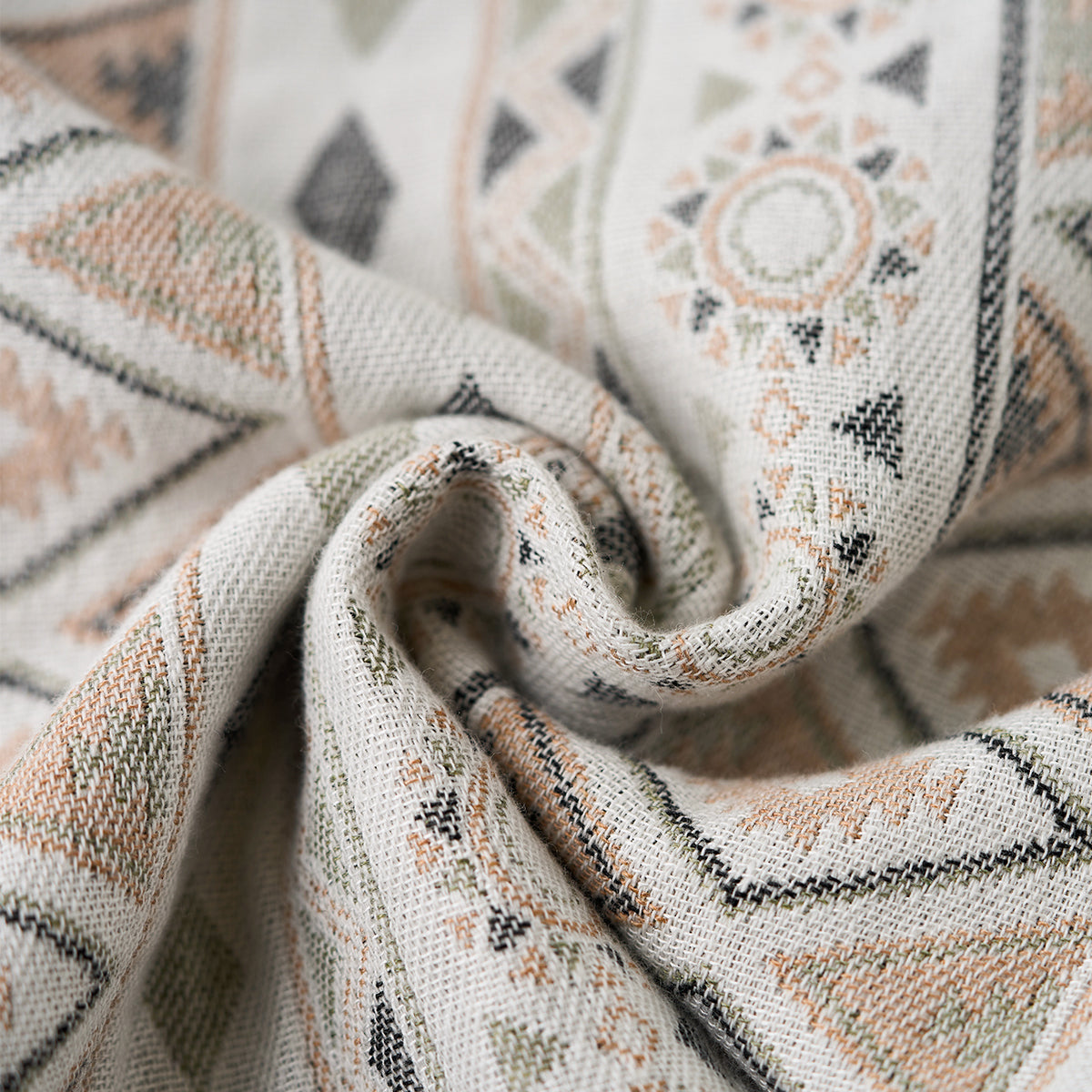 자카드 직조로 표현된 에스닉 패턴과 은은한 입체감이 고급스러운 분위기를 연출하며, 차분한 컬러로 부담 없이 착용할 수 있습니다.