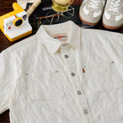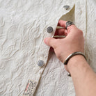 엠보 가공으로 표현된 은은한 페이즐리 패턴이 세련된 분위기를 더하며, 메탈 버튼과 양쪽 포켓으로 빈티지 감성을 살렸습니다