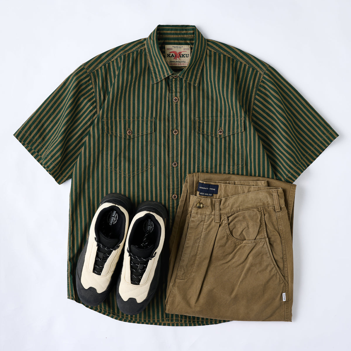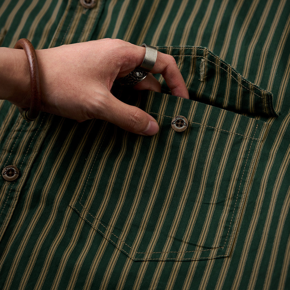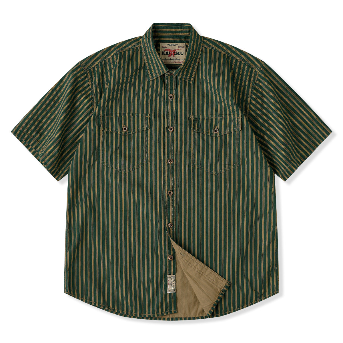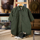 더블 포켓 빈티지 스트라이프 코튼 반팔 셔츠