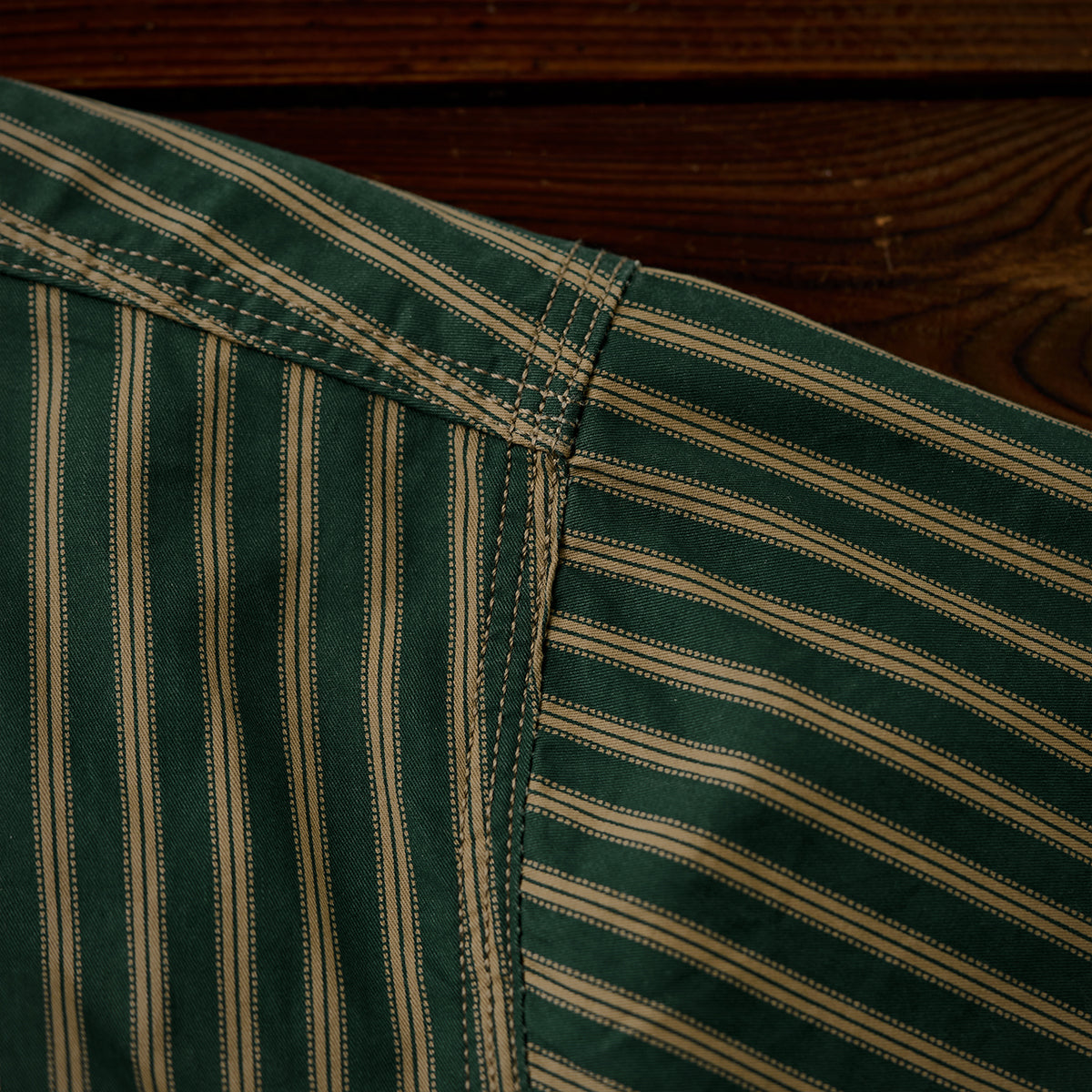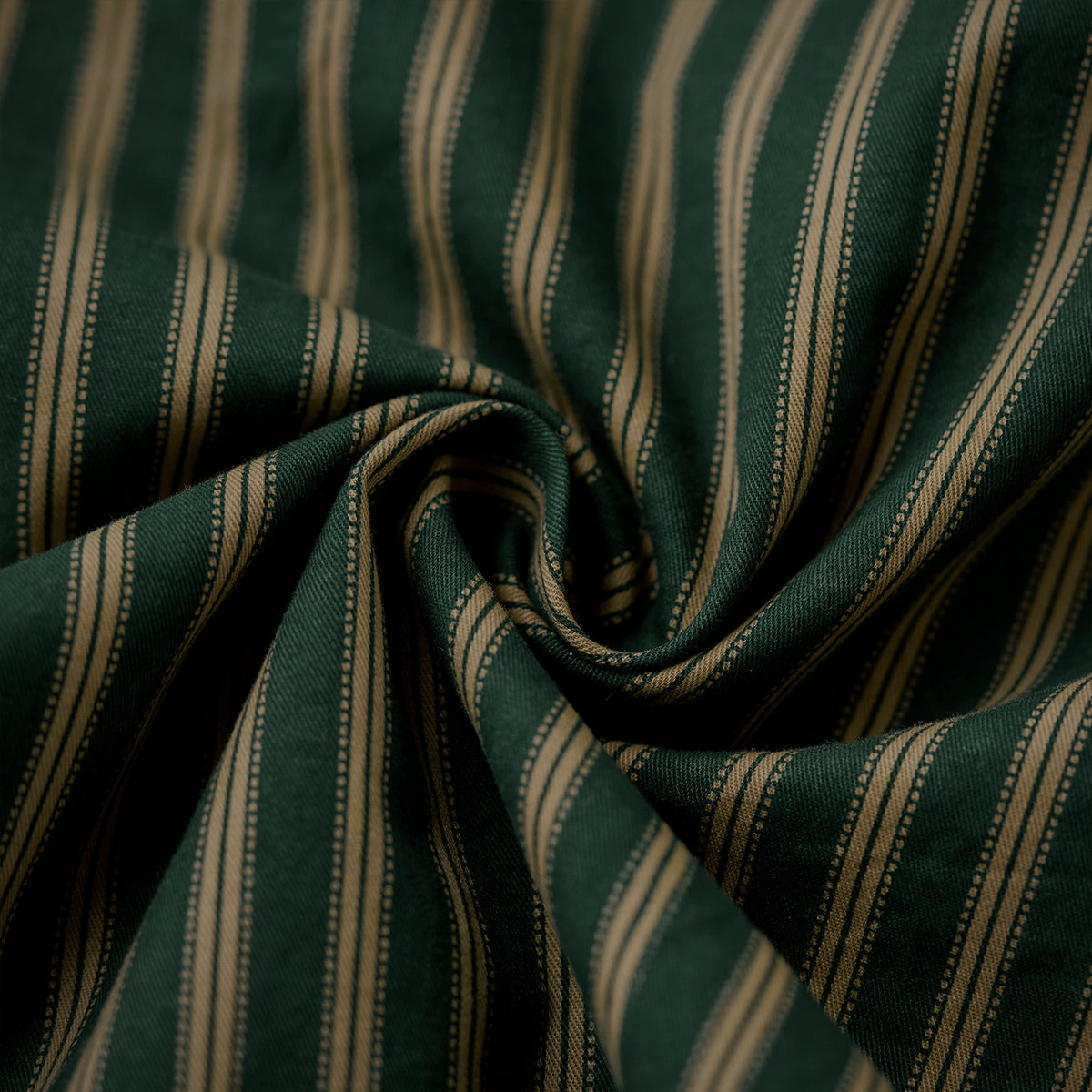 스트라이프 간격이 얇고 균일해 과하게 튀지 않으면서도 다른 아이템과 매치하기 좋은 밸런스 있는 패턴입니다. 그린 컬러는 차분하고 자연스러운 느낌을 줍니다.
