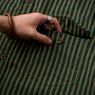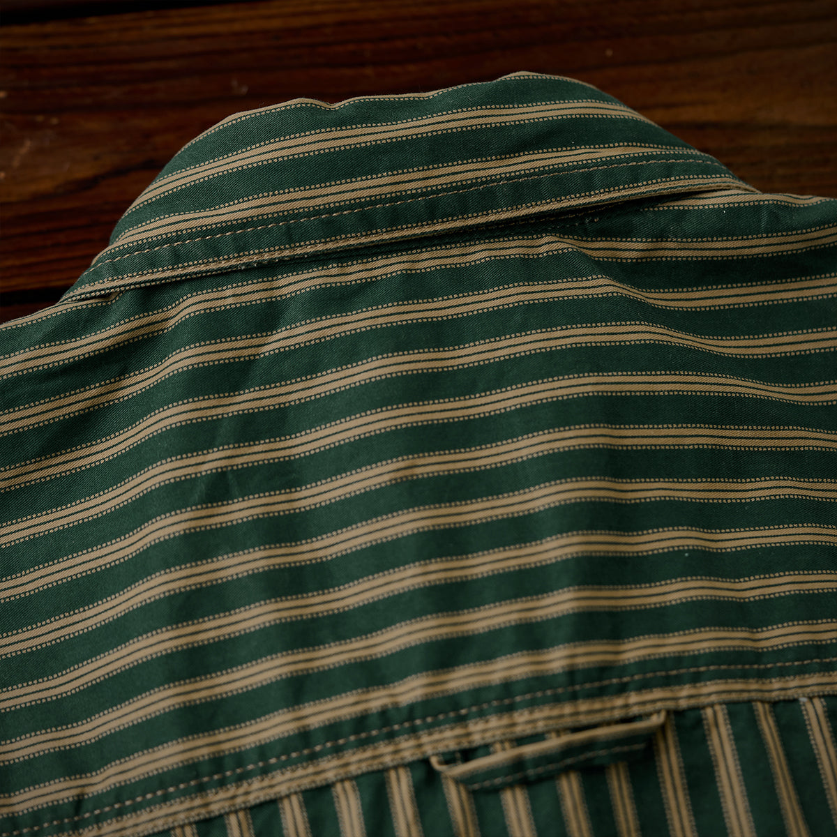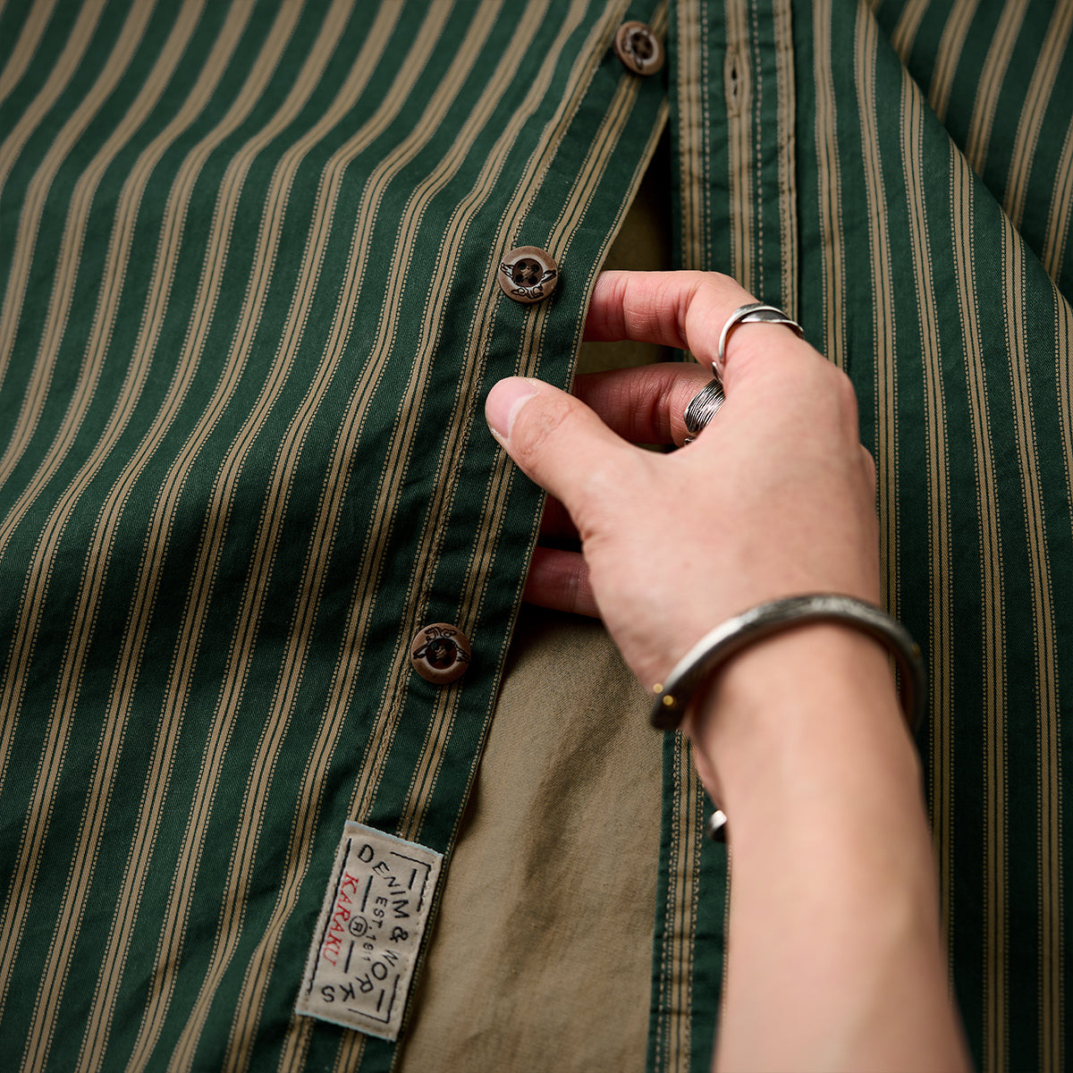 스트라이프 패턴과 그린·옐로우 컬러 조합으로 부담 없이 매치하기 좋은 캐주얼 셔츠입니다. 더블 포켓과 여유 있는 실루엣으로 멋을 살린 아이템입니다.