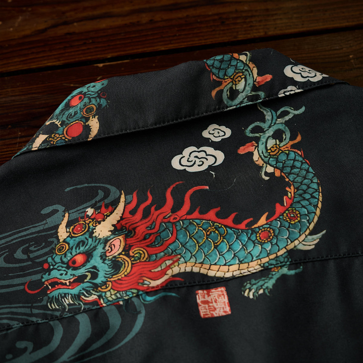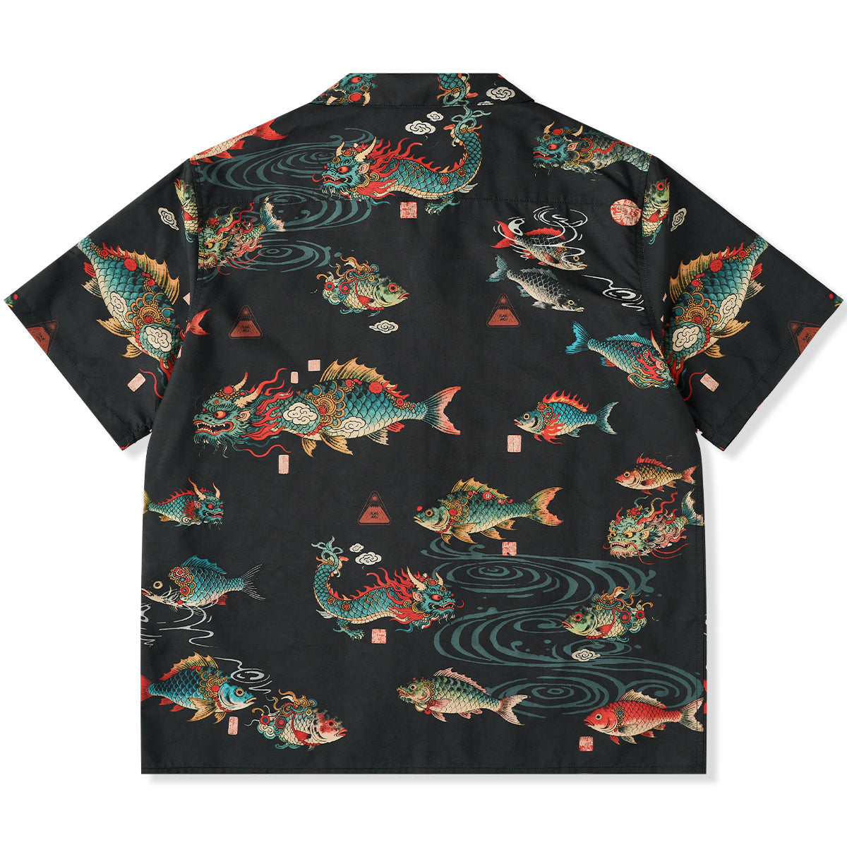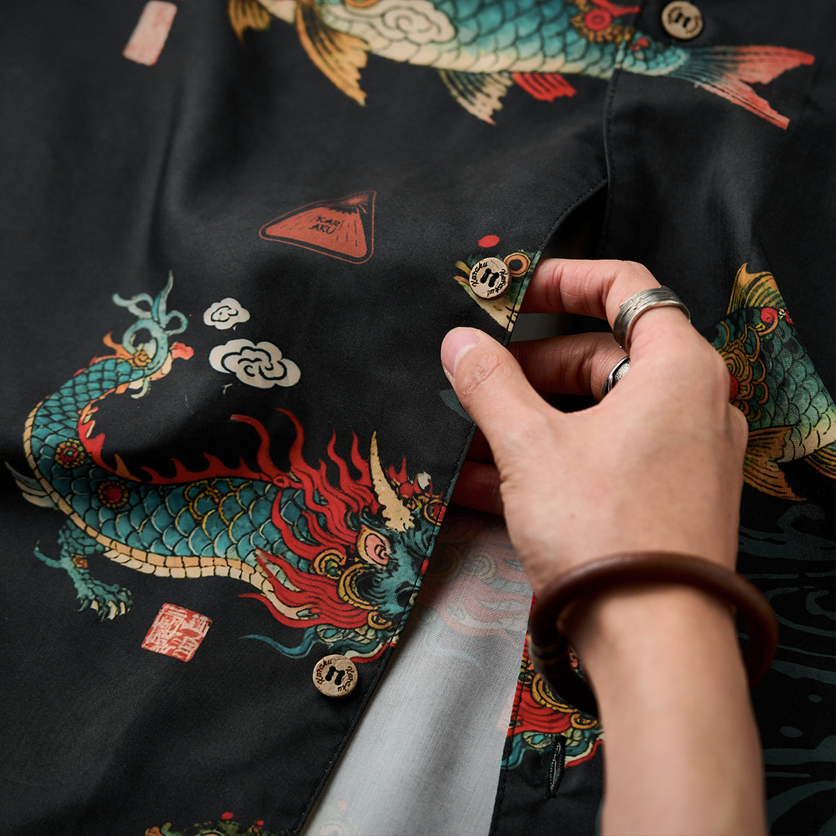 『산해경·어화용 전설』 프린트 페이크 텐셀 알로하 셔츠