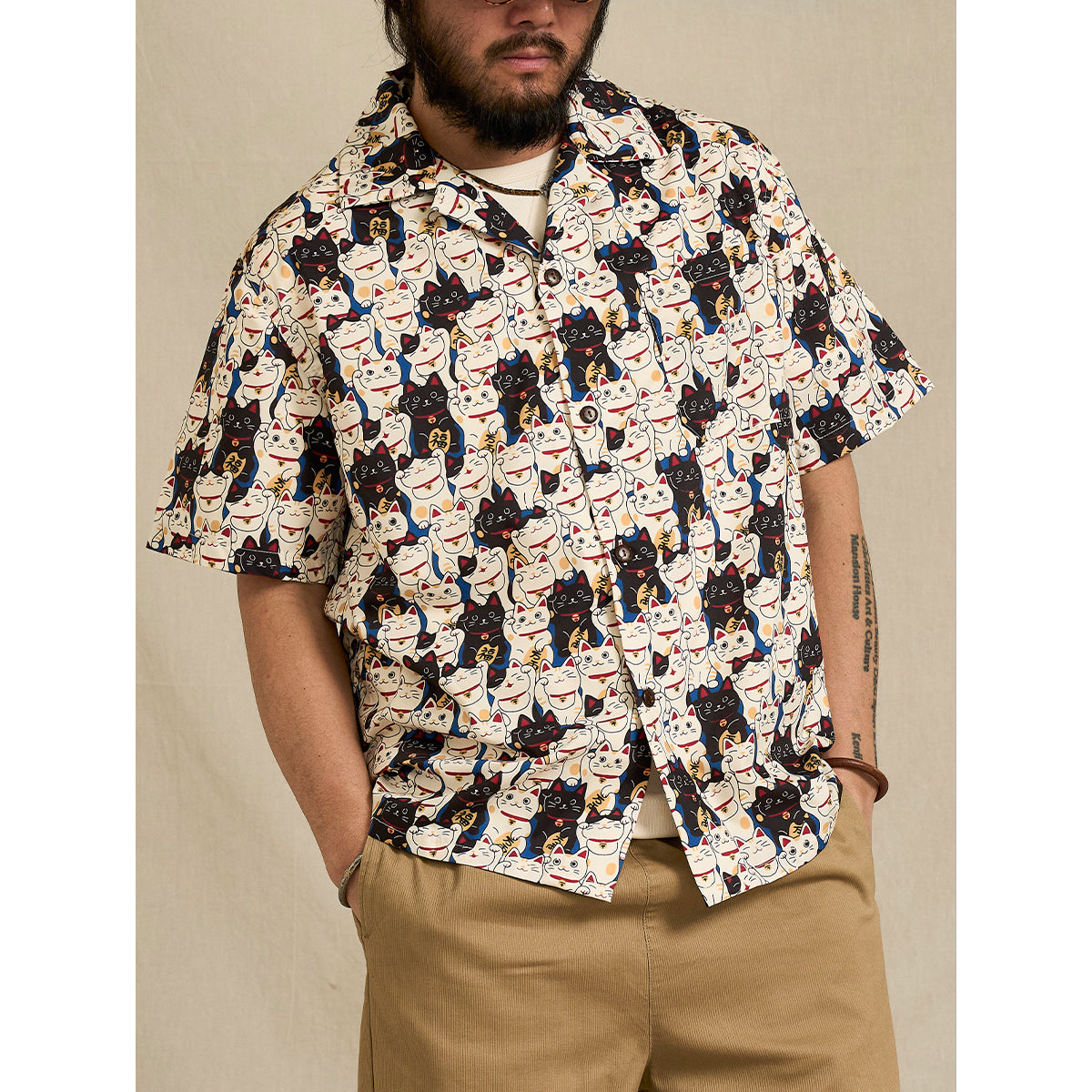 에도시대「마케고양이」무늬 알로하셔츠