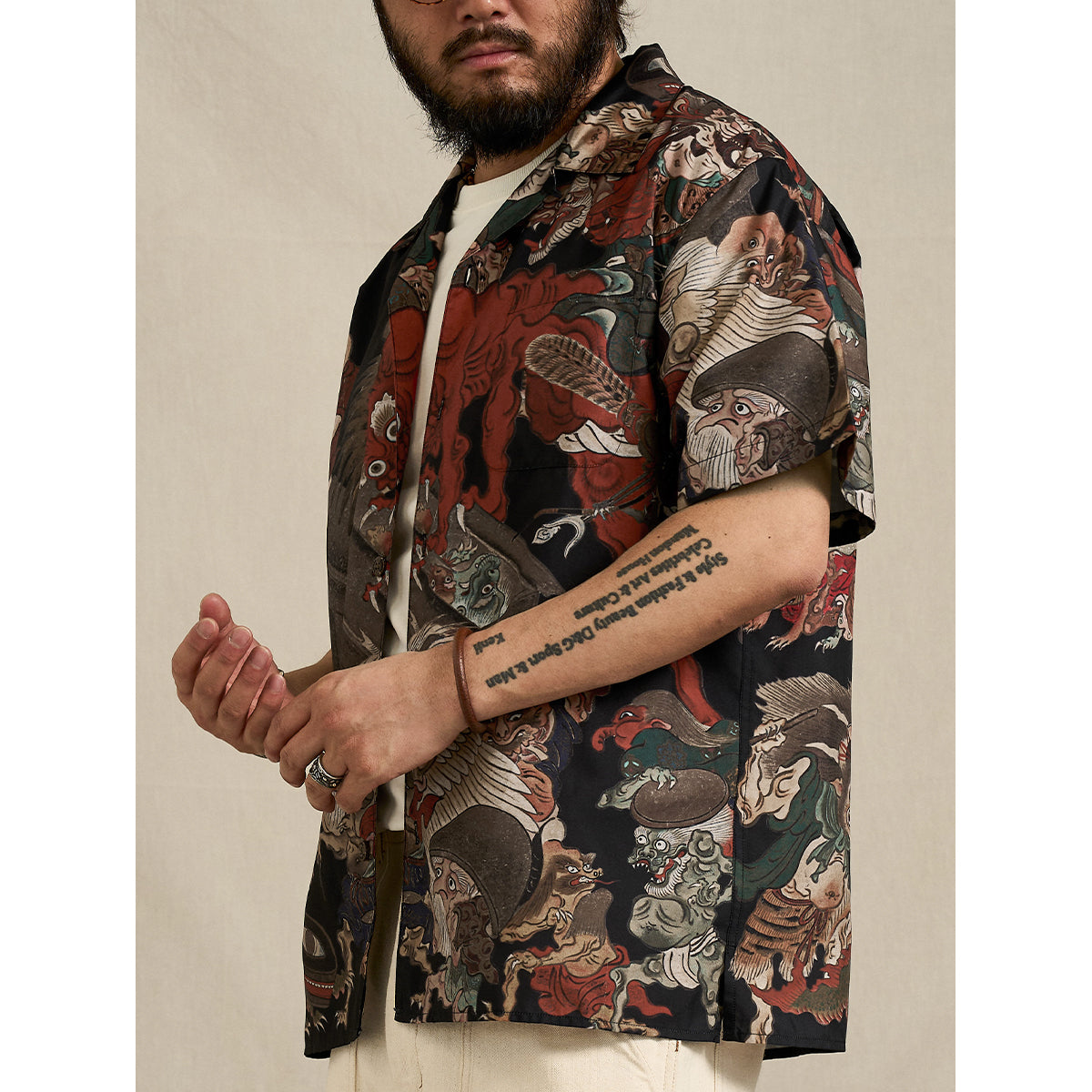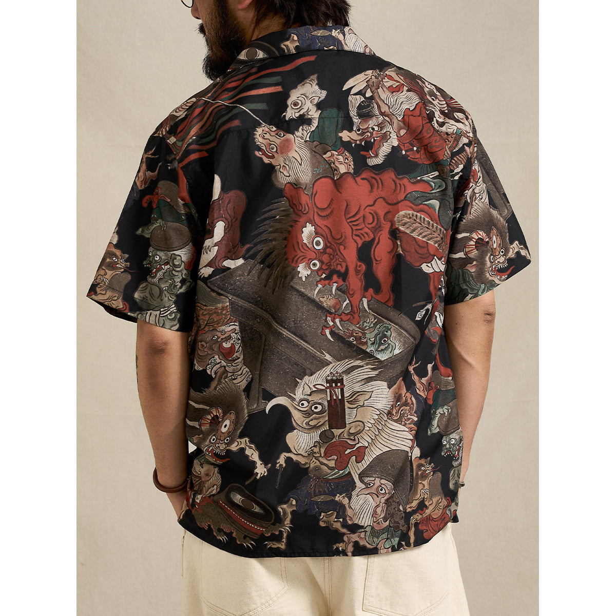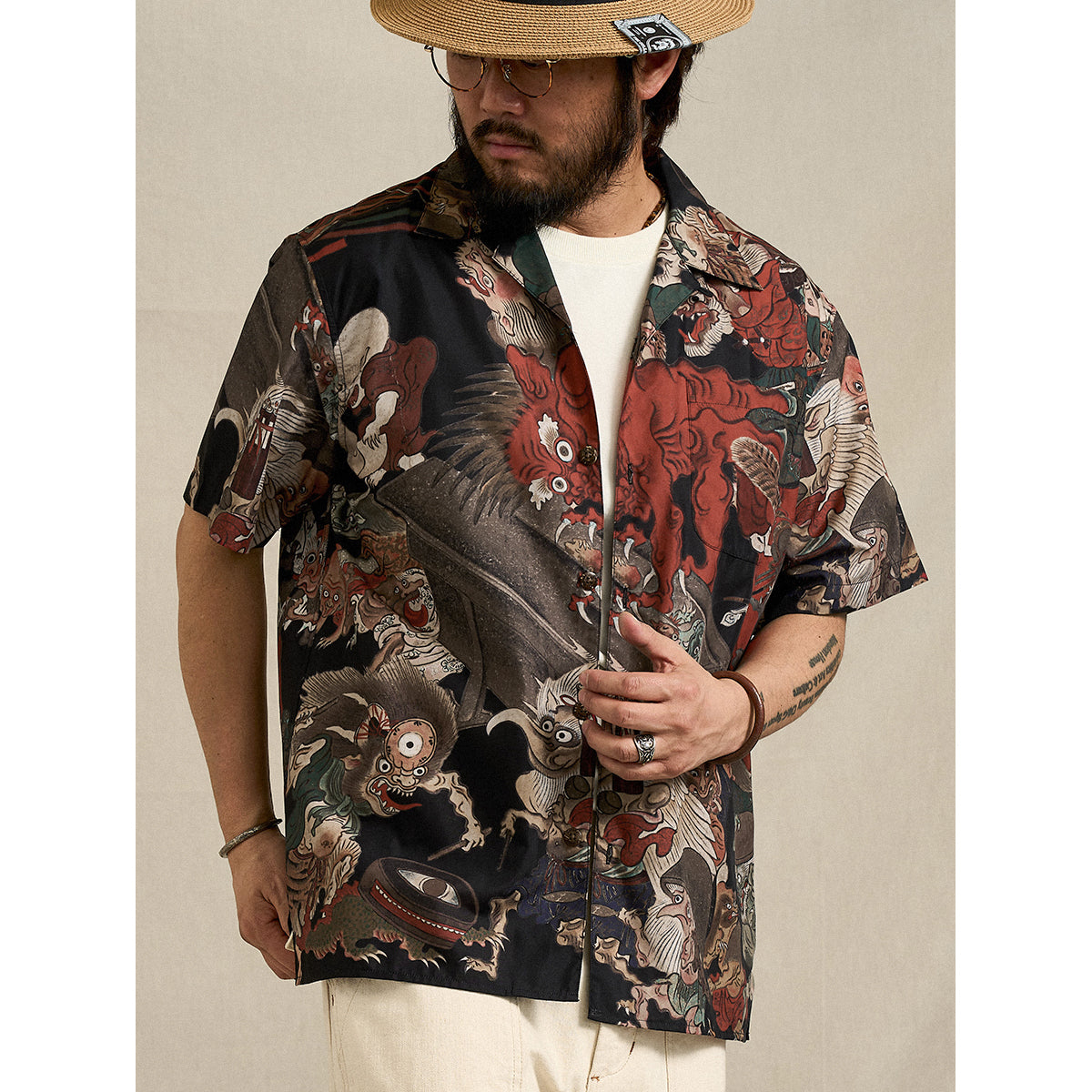 室町(무로마치)시대「요괴에마키」우키요에 무늬 오픈칼라 셔츠