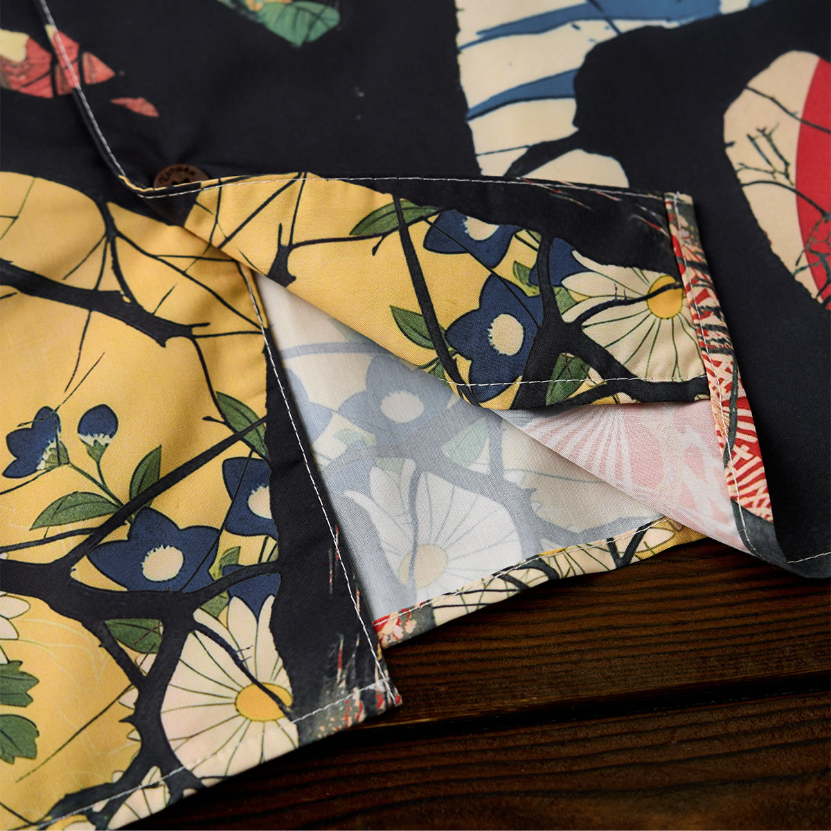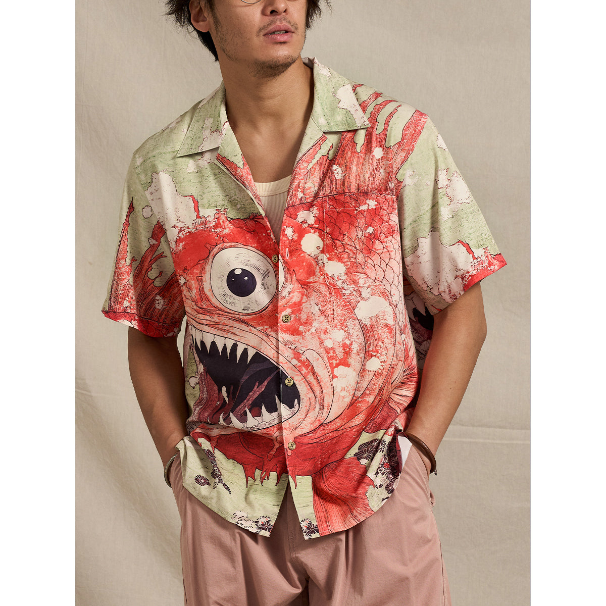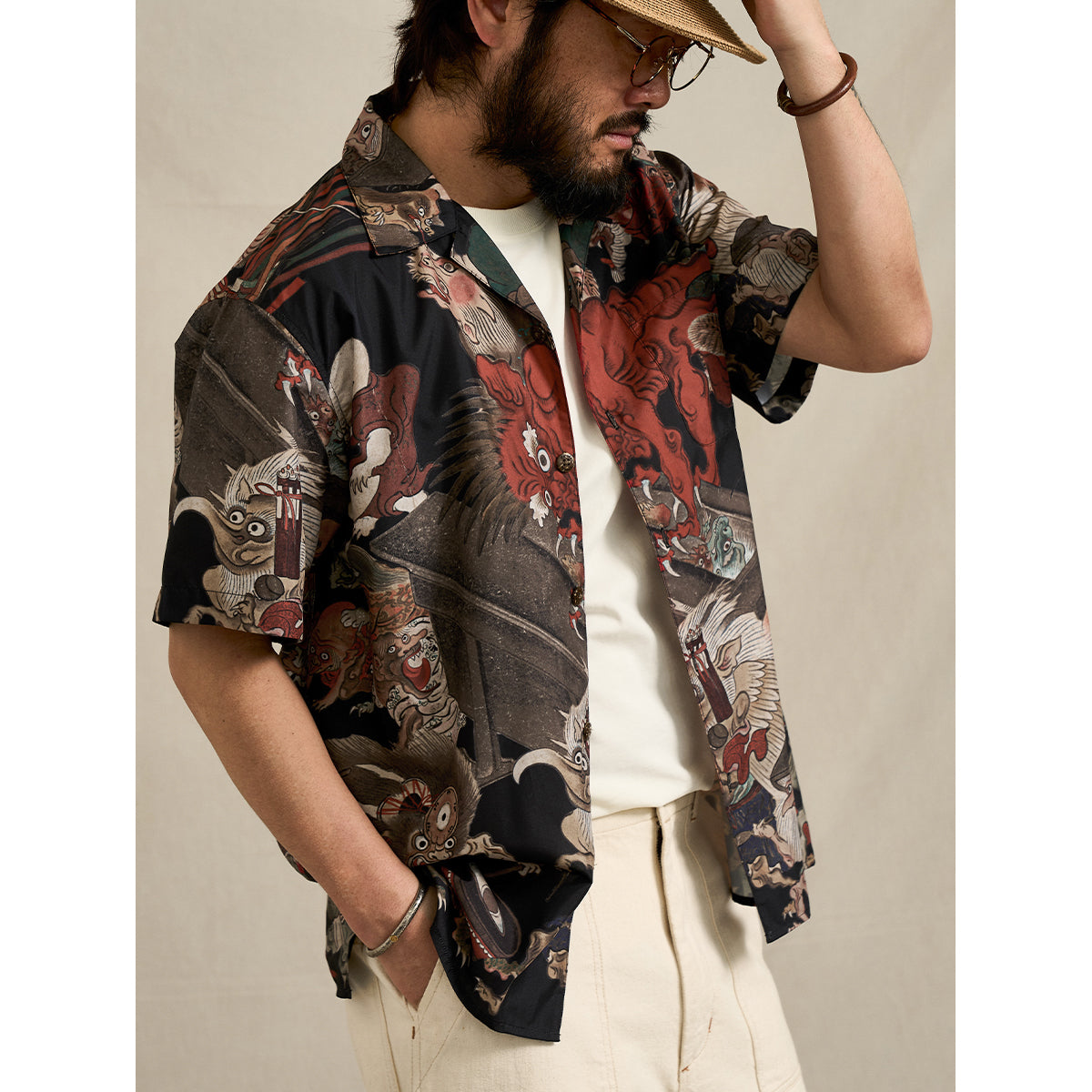 室町(무로마치)시대「요괴에마키」우키요에 무늬 오픈칼라 셔츠