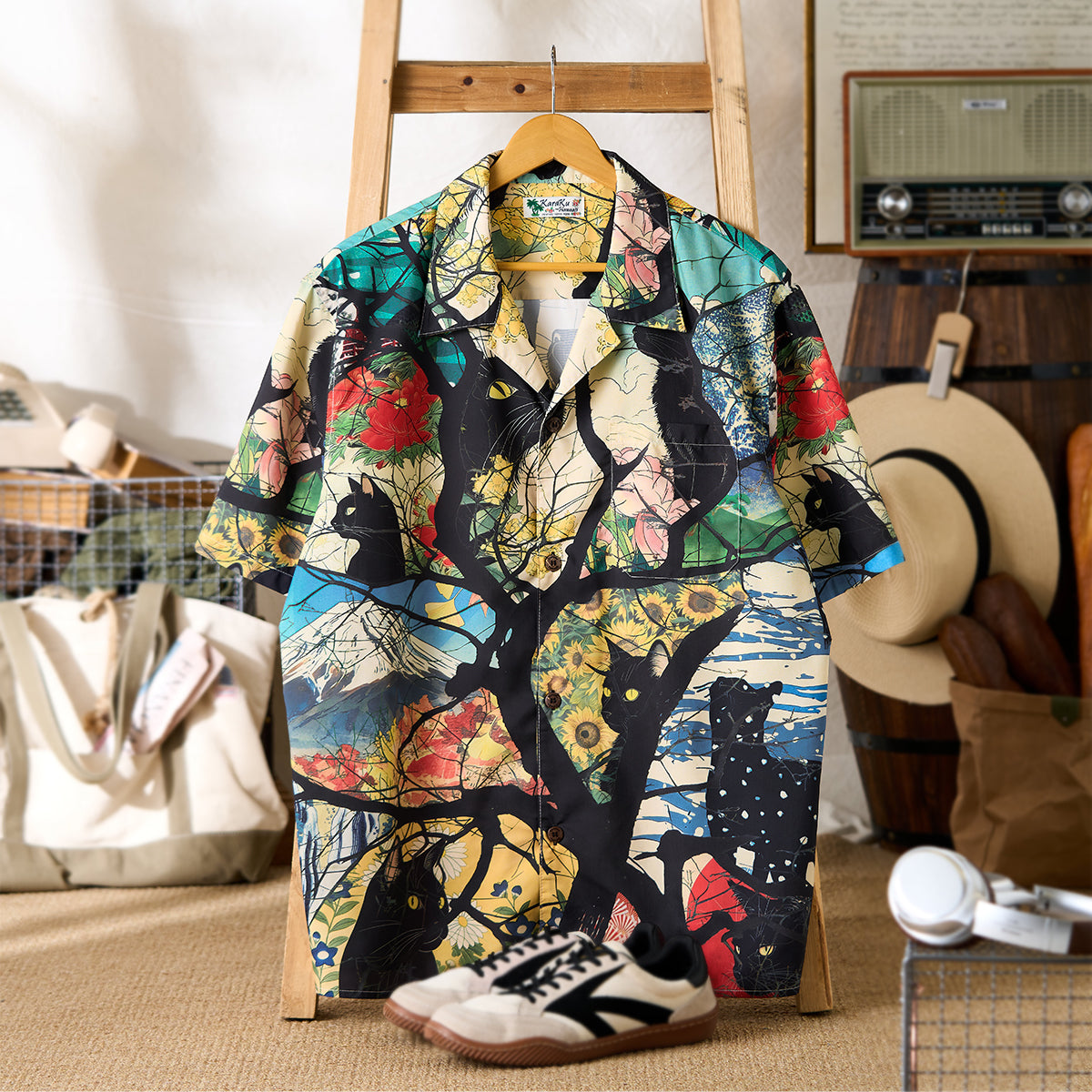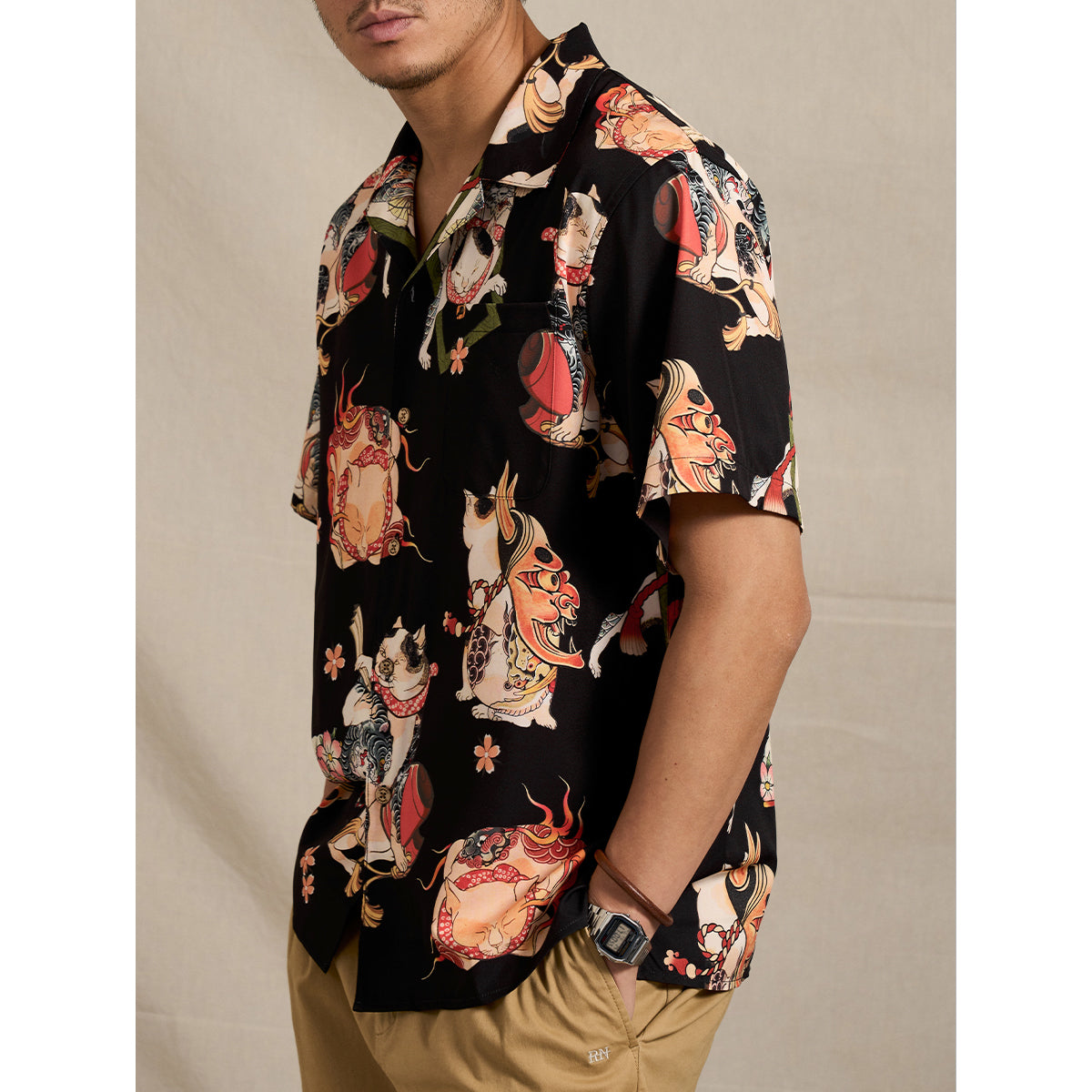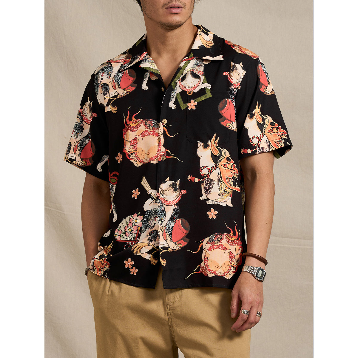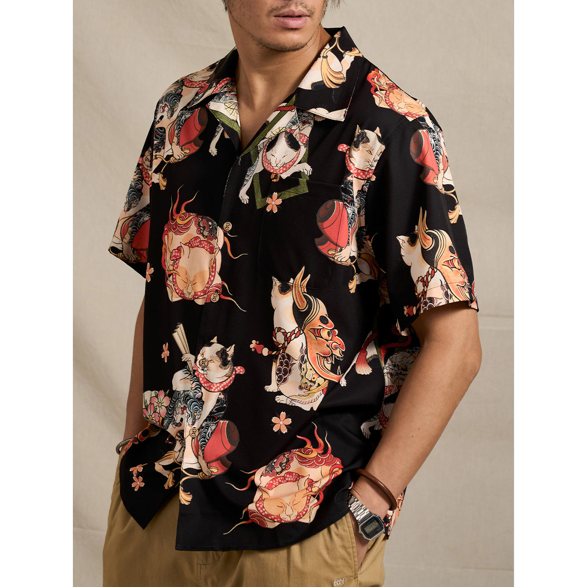 「和猫百態」올오버 프린트 우키요에 알로하 셔츠