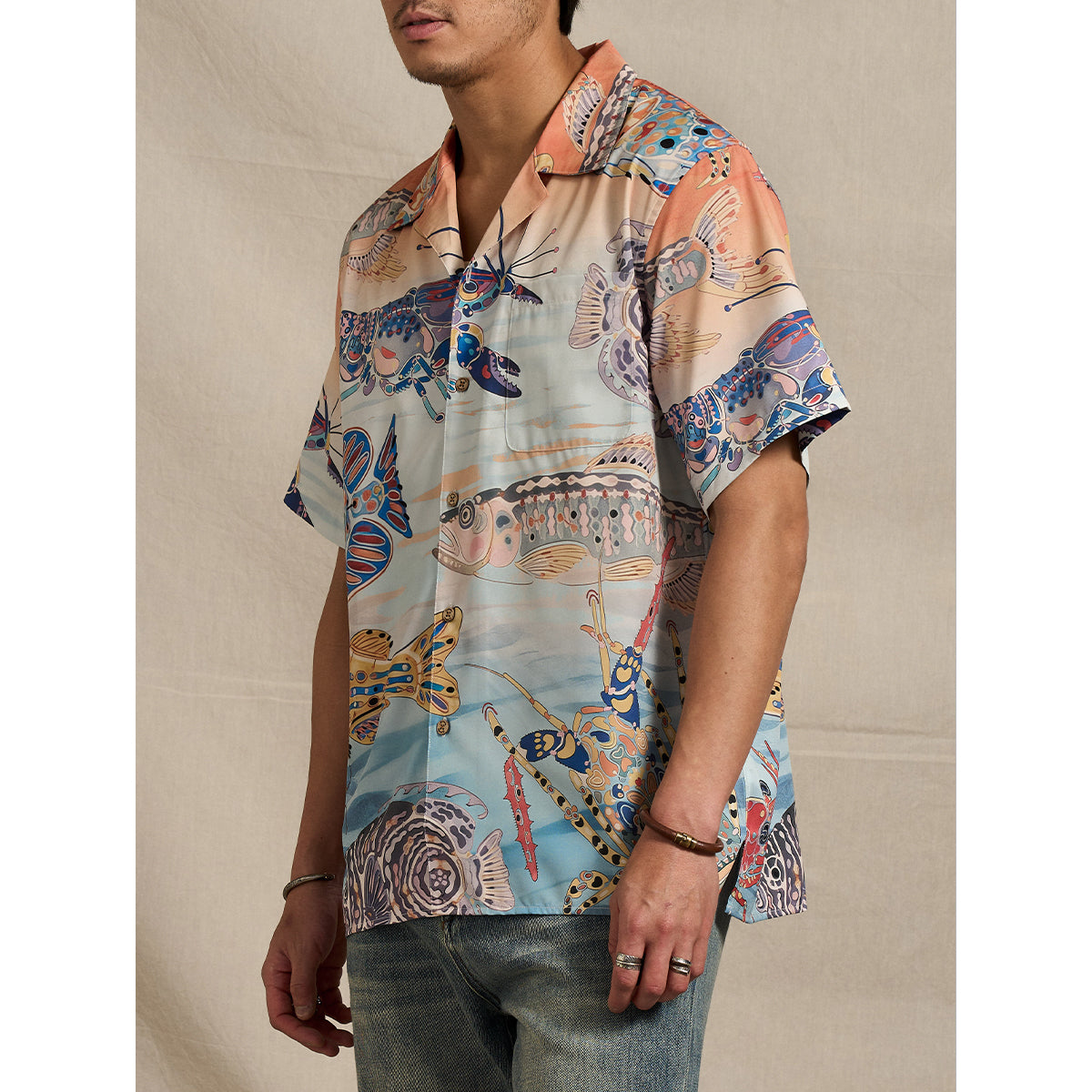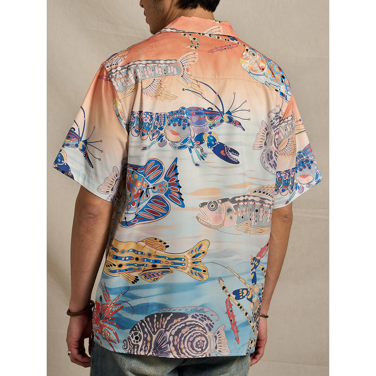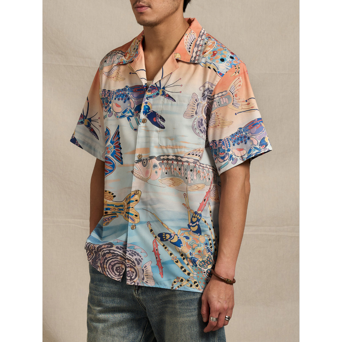 이토 쟈쿠츄「群魚図」프린트 오픈 카라 알로하 셔츠