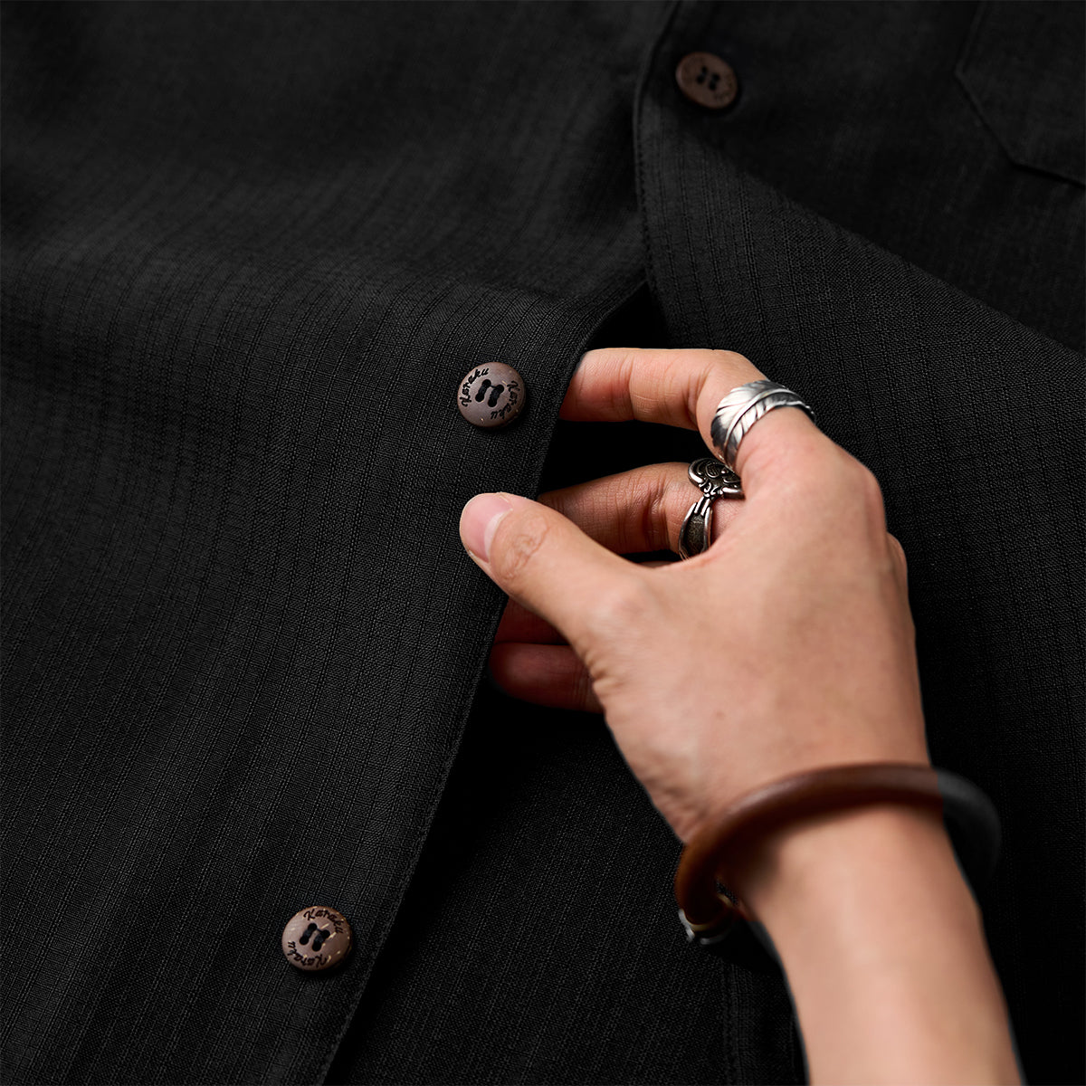 【사전예약】플래킷·포켓 체인 스티치 디테일 린넨 혼방 오픈 카라 셔츠
