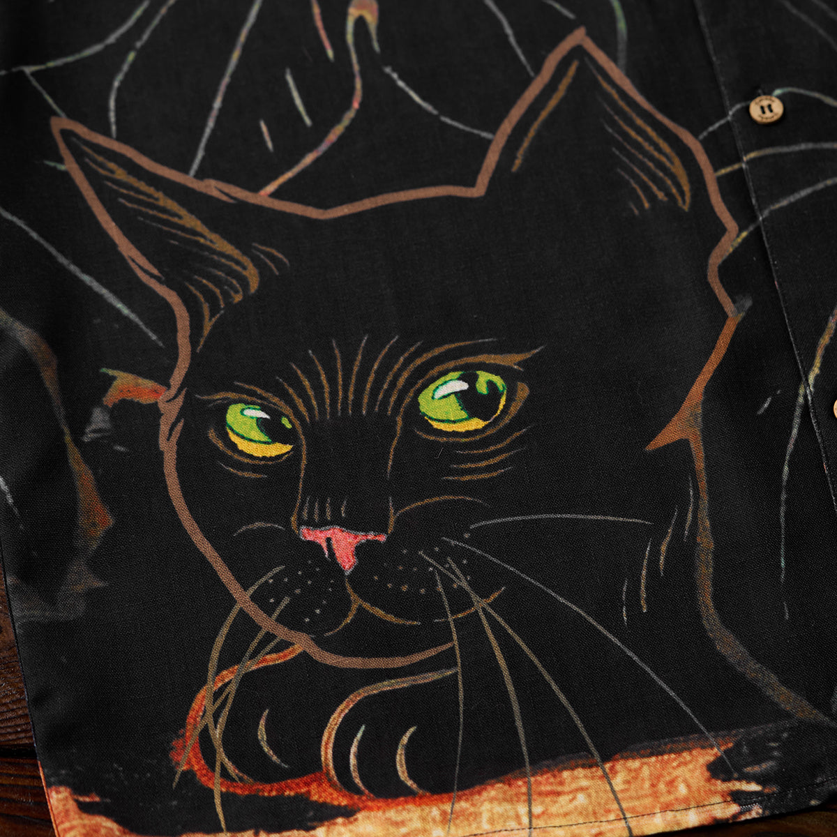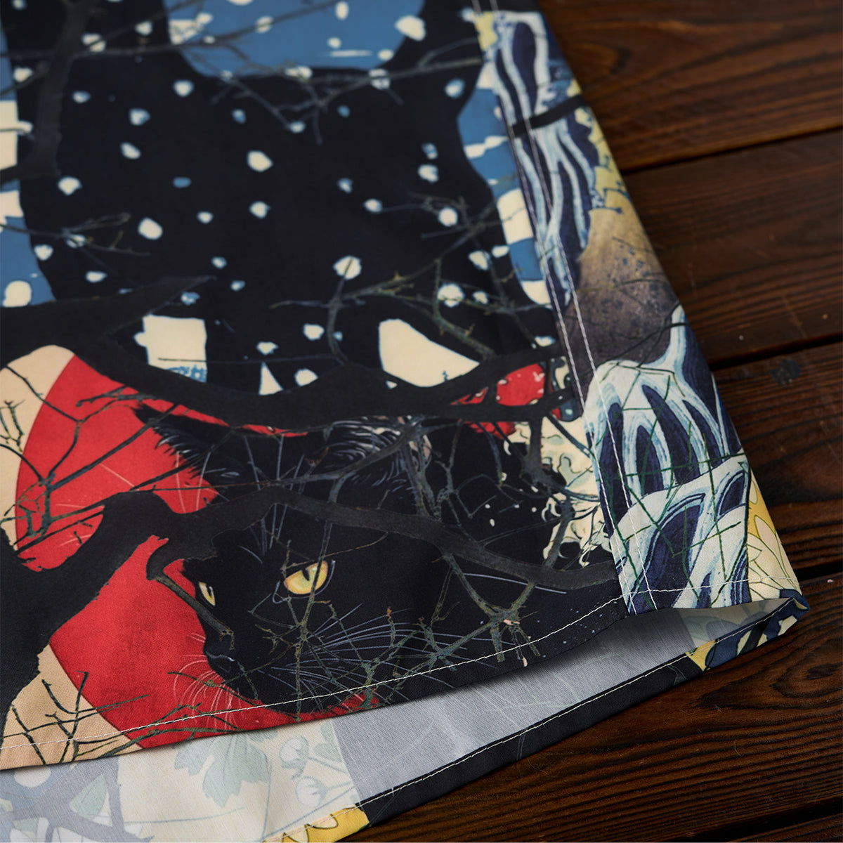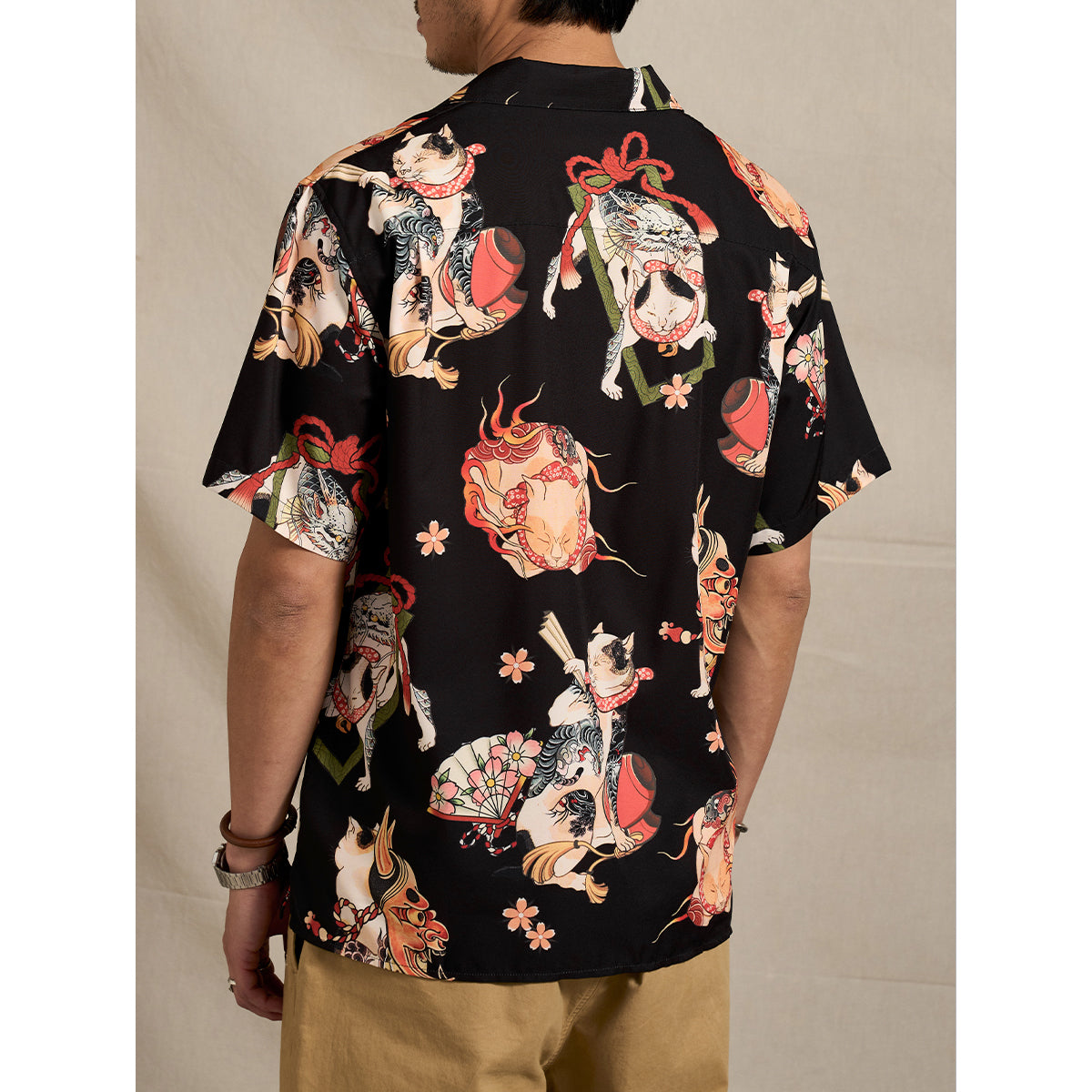 「고양이 요괴」우키요에 오픈칼라 셔츠