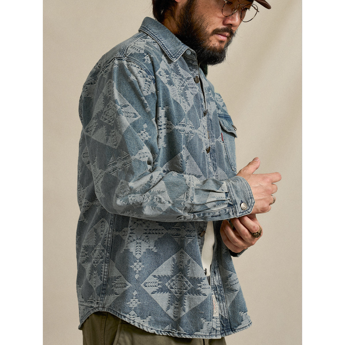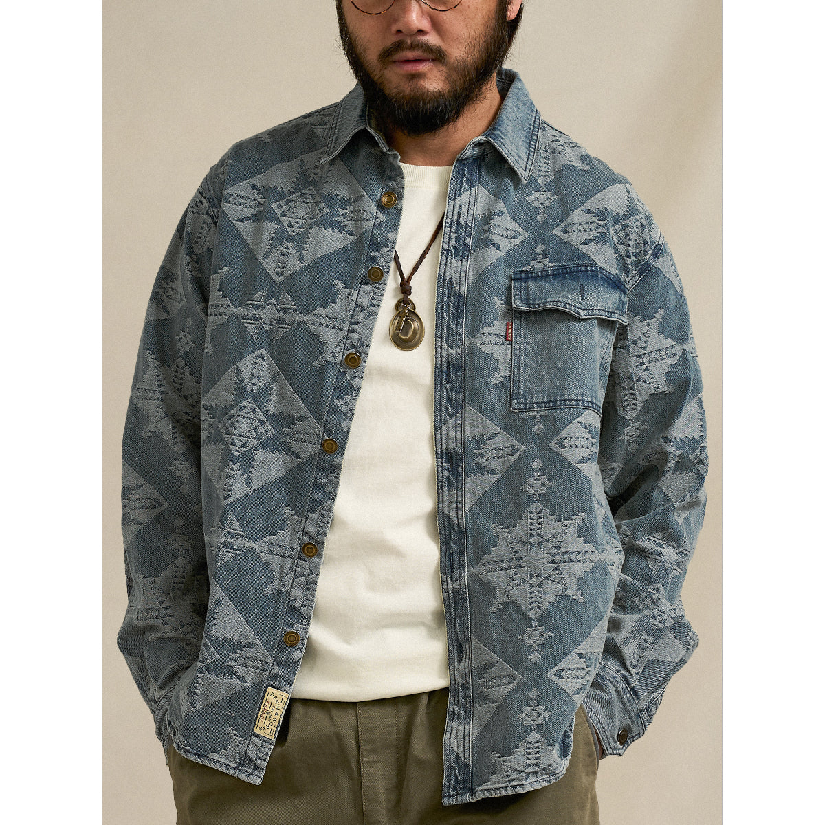 네이티브 아메리칸 기하학 패턴 자카드 데님 셔츠