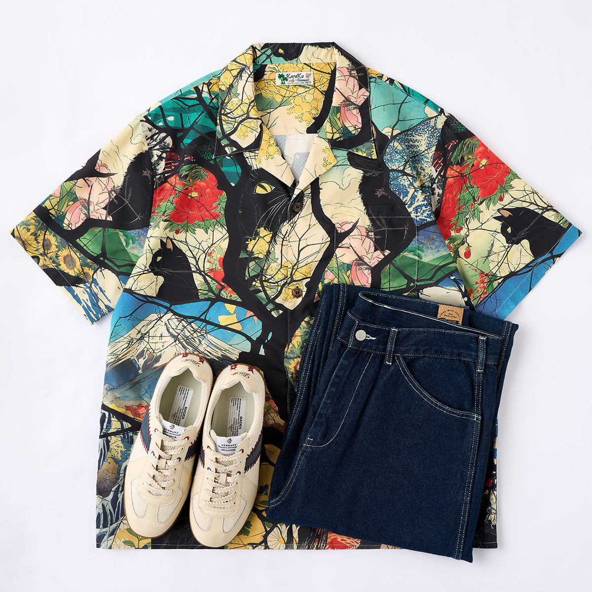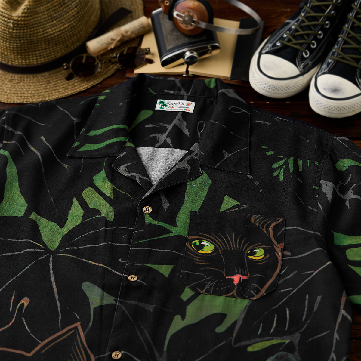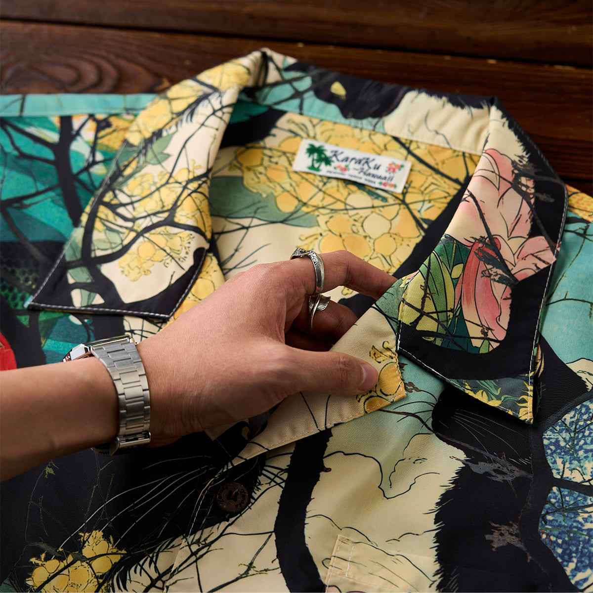 【사전예약】「흑묘의 사계 여행」 두루마리 올오버 프린트 알로하 셔츠