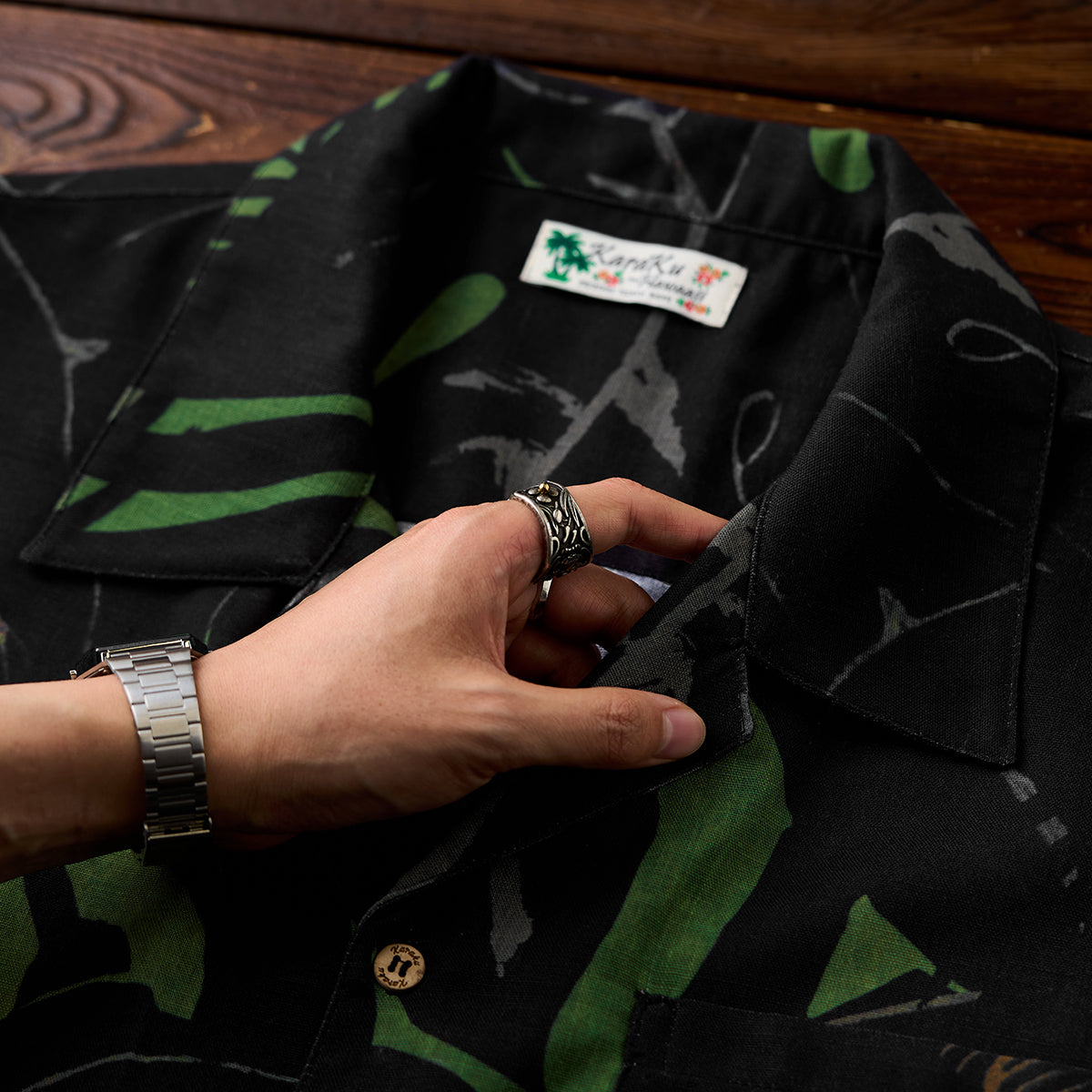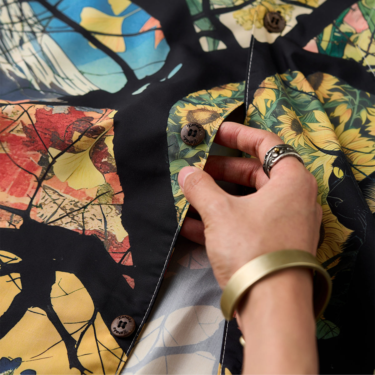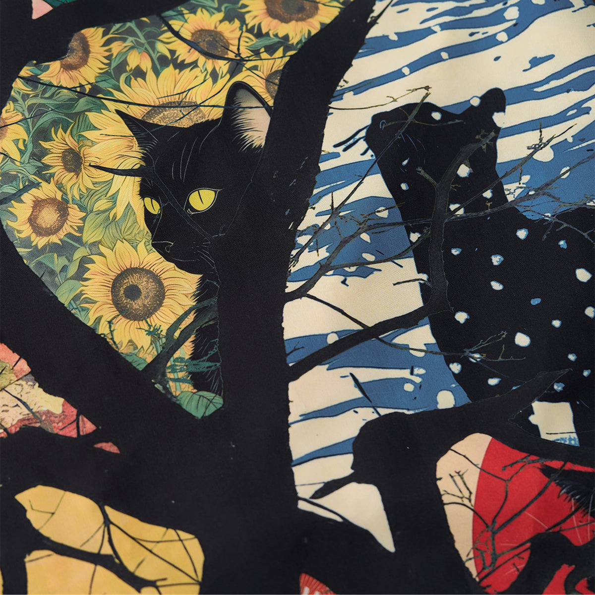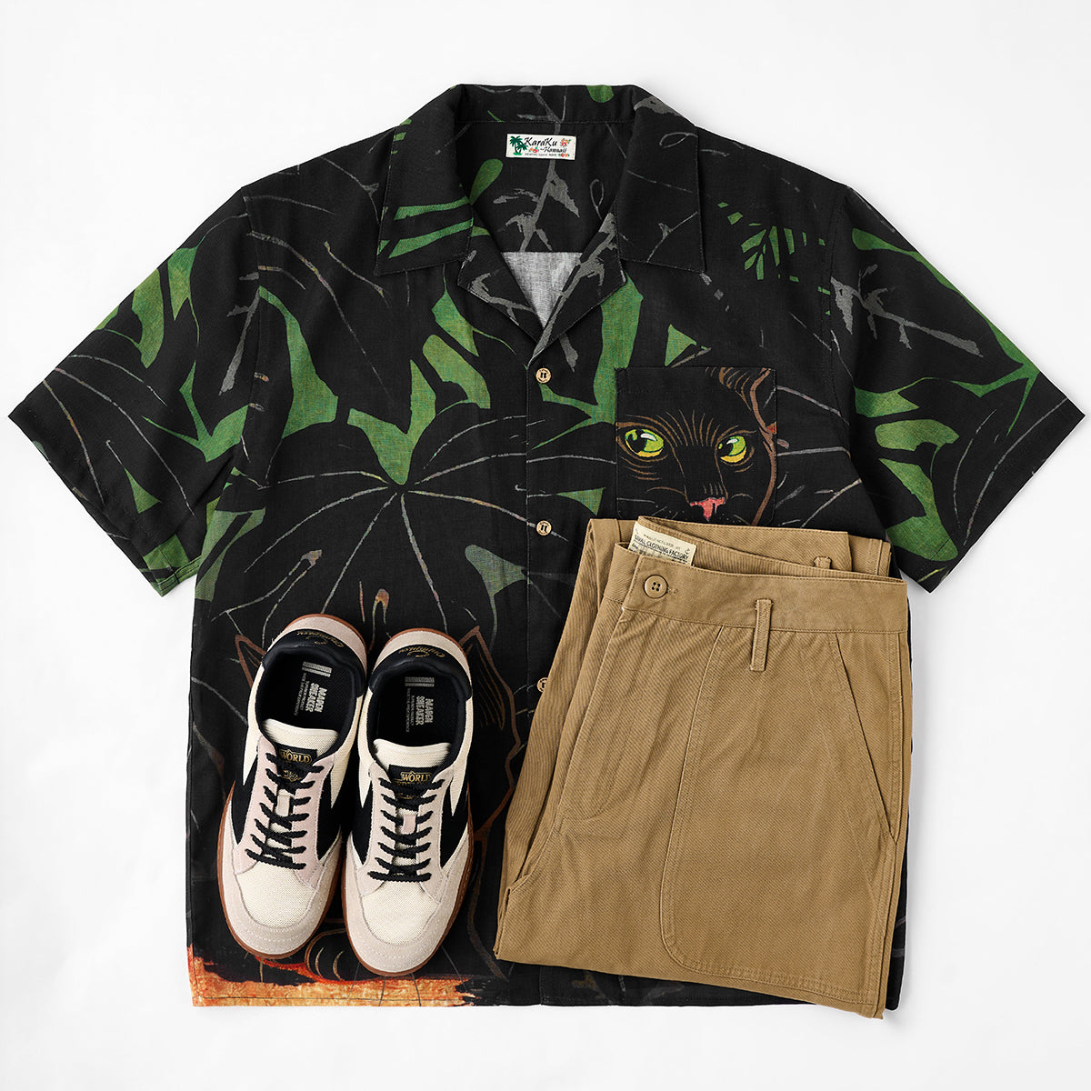 【사전예약】「흑묘의 사계 여행」 두루마리 올오버 프린트 알로하 셔츠