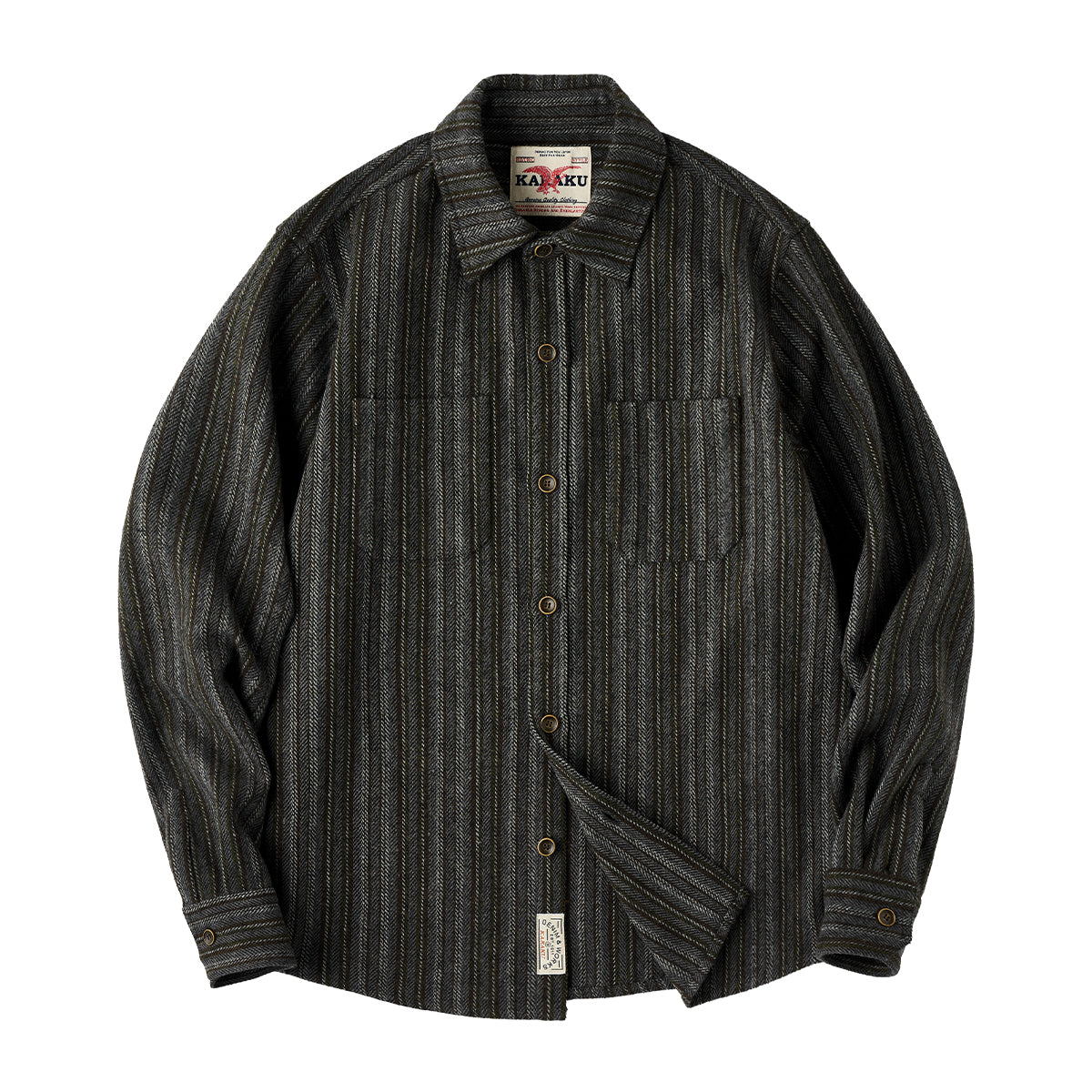 【사전예약】유즈드 가공 버튼 레트로 스트라이프 자카드 워크 셔츠