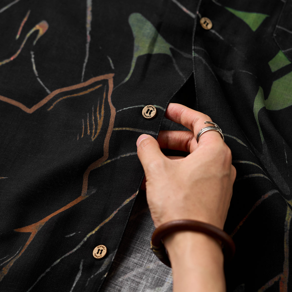 『산해경·어화용 전설』 프린트 페이크 텐셀 알로하 셔츠