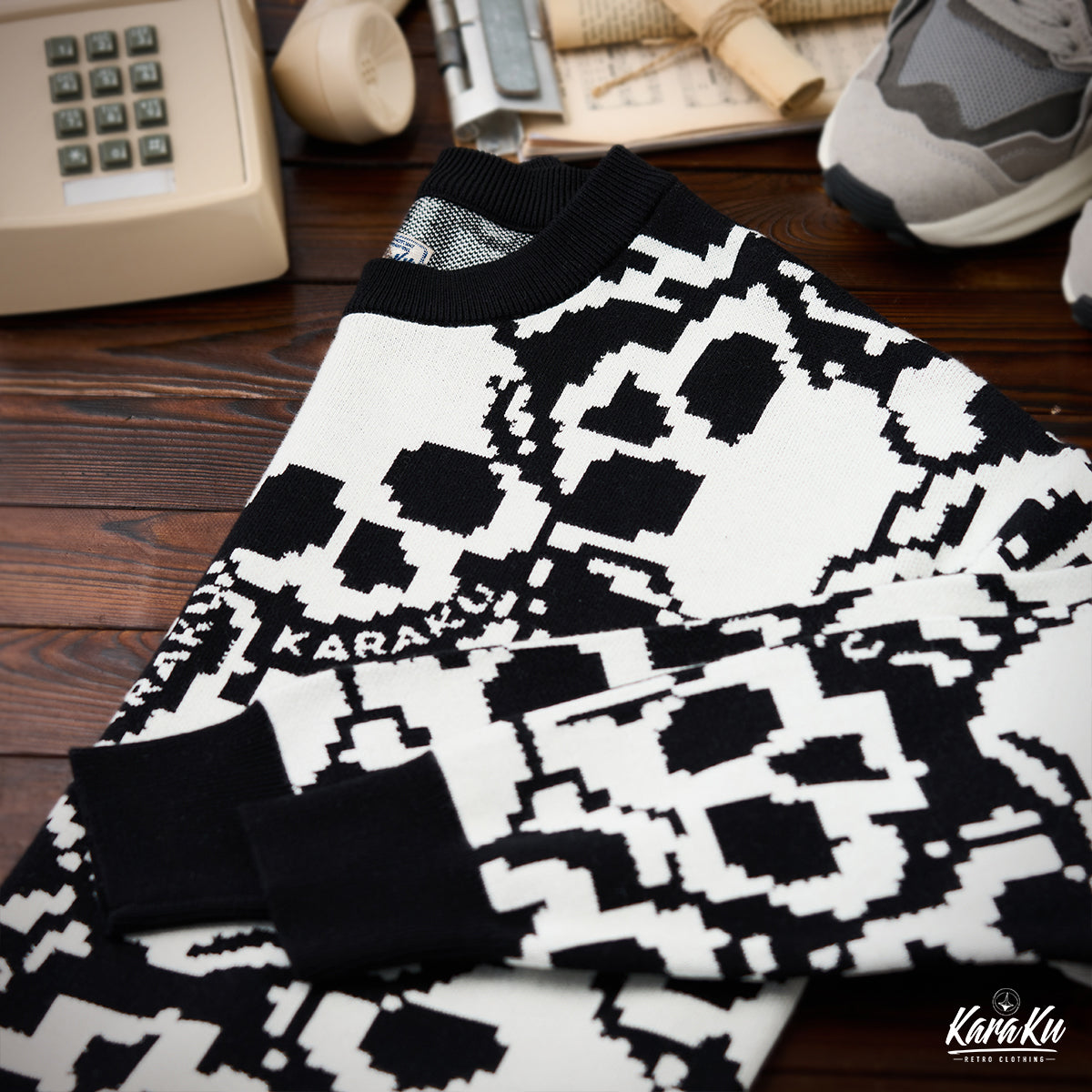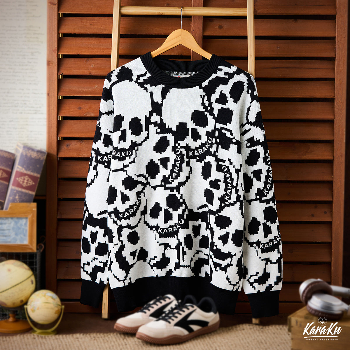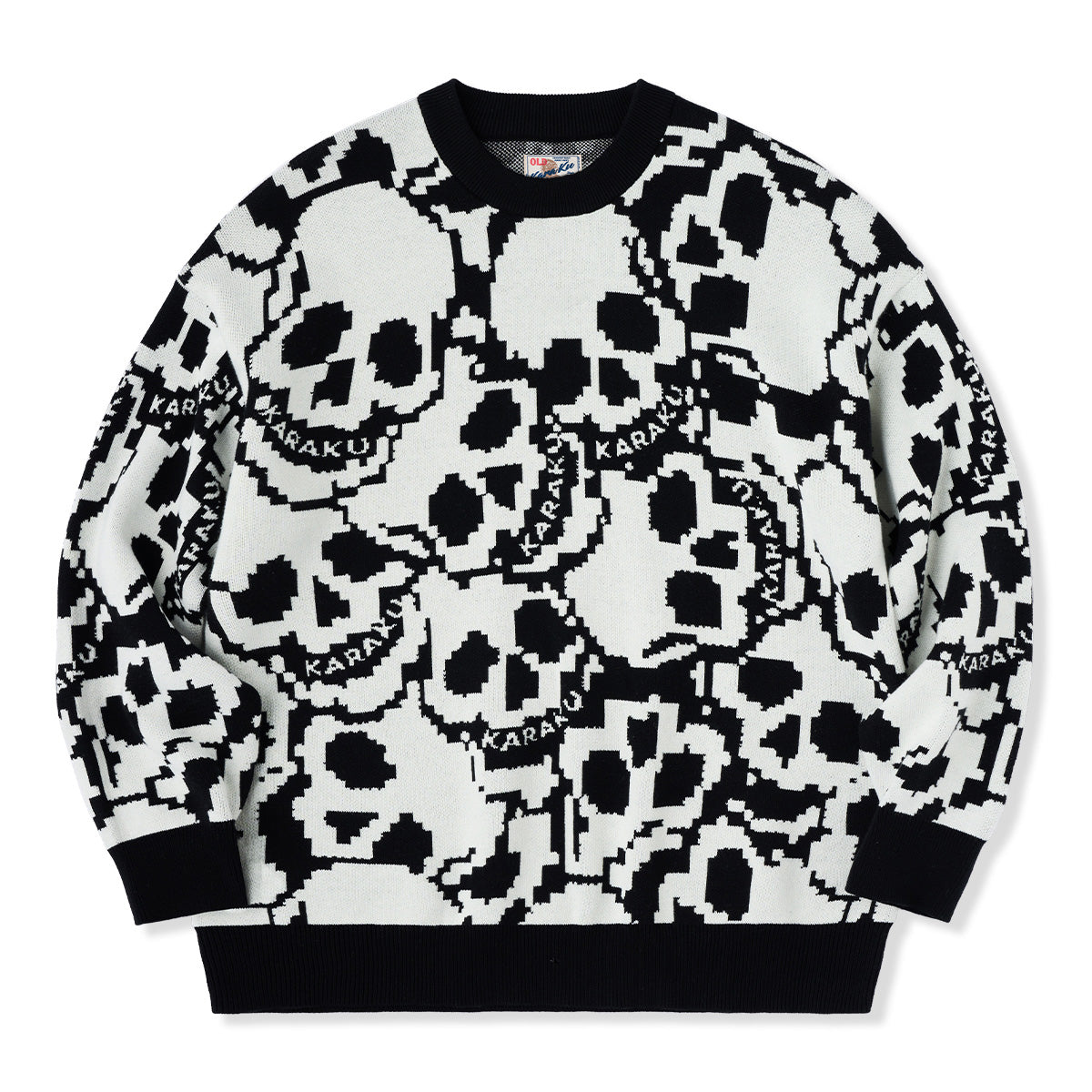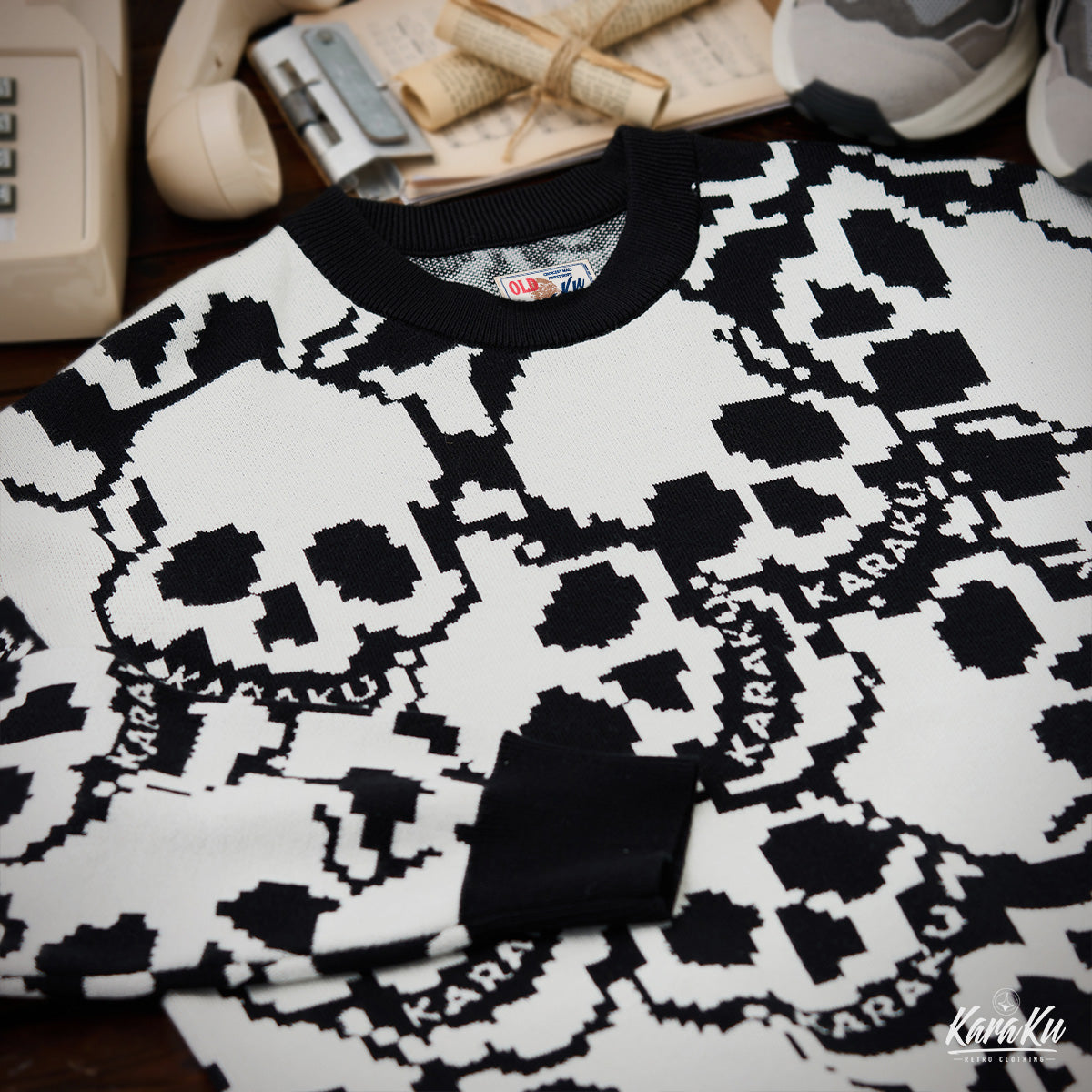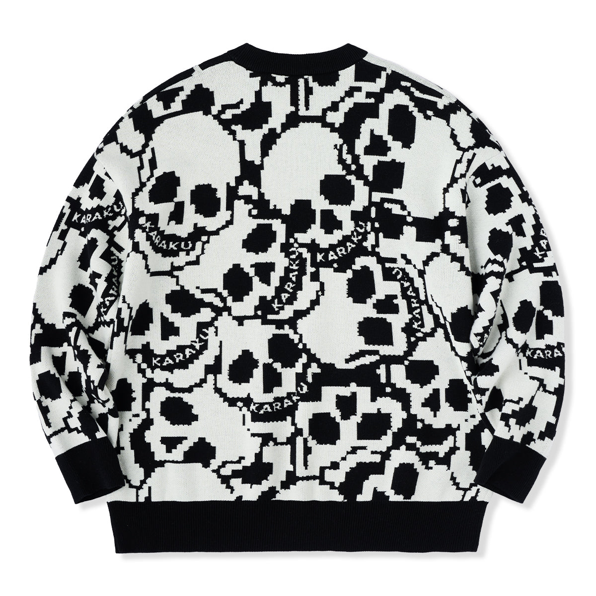 「KARAKU」명품 로고 스컬 무늬 자가드 니트 스웨터