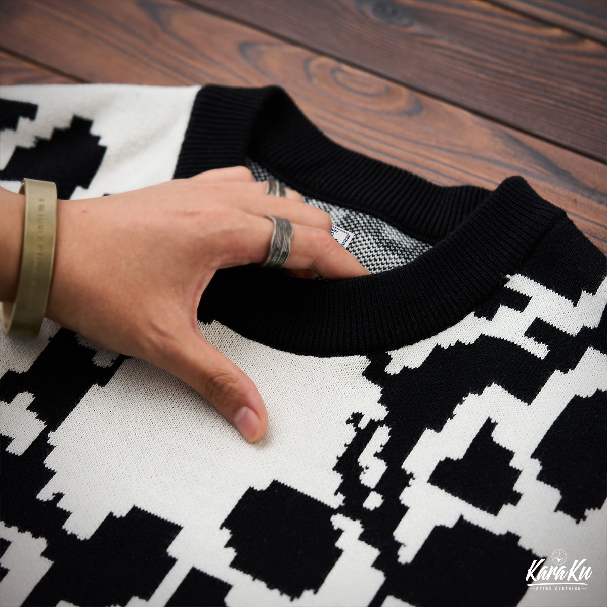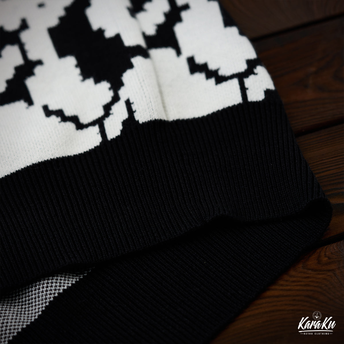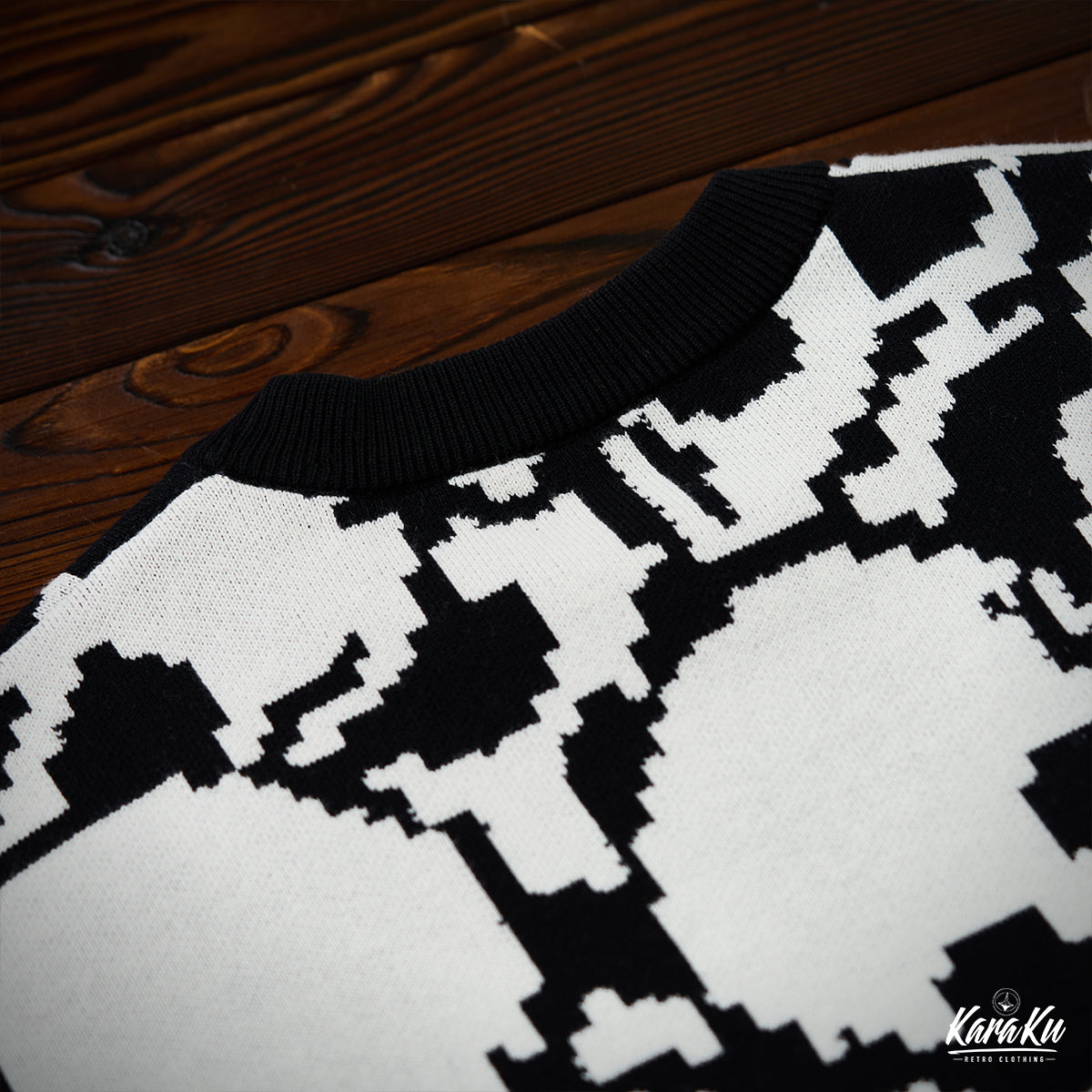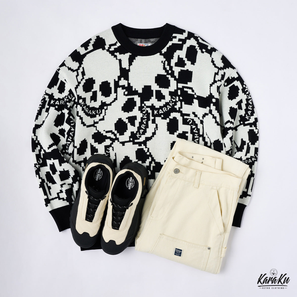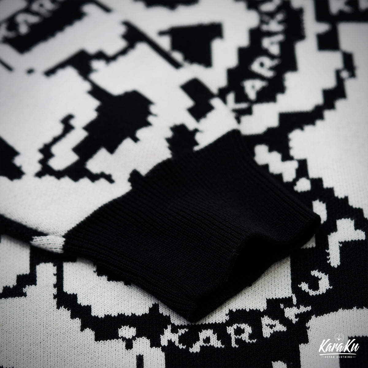 「KARAKU」명품 로고 스컬 무늬 자가드 니트 스웨터