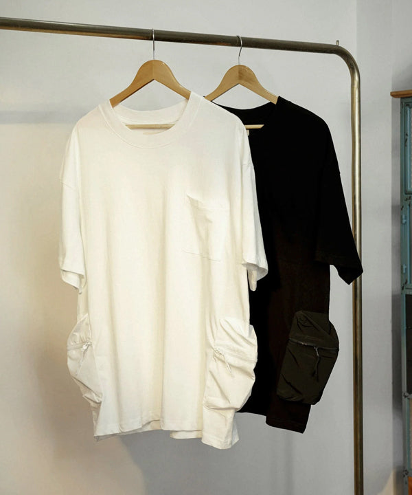 드롭 숄더와 긴 기장으로 편안하면서도 세련된 디자인입니다. 지퍼 포켓과 작은 포켓으로 실용성 높이며, 블랙과 화이트 색상을 보유하며 코튼소재로 통기성이 좋아 언제든지 쾌적한 착용감을 제공합니다. 슬랙스나 데님과 잘 어울립니다.