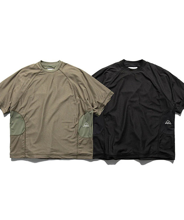 스포티 아웃도어 감성이 돋보이는 편하고 스타일리시한 티셔츠입니다. 메쉬 베이스에 부분적으로 다른 소재 원단으로 만들어 특별한 느낌을 줍니다. 통기성이 뛰어난 메쉬 소재를 메인으로 사용하여 가볍고 시원한 착장감은 물론, 여름용 속건 기능으로 매우 좋습니다. 여유있는 핏으로 활동하기에 편안하며 기능성까지 겸비했습니다. 야외활동 외출 시 딱 좋은 아이템입니다.