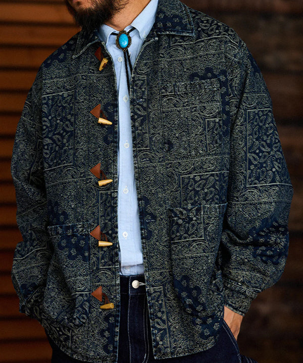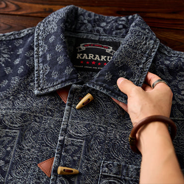 페이즐리 반다나 패턴에 나무 느낌의 토글 버튼을 더해 내추럴한 무드를 연출한 아이템. 3포켓 구성으로 실용성과 균형 잡힌 실루엣을 갖췄습니다.