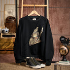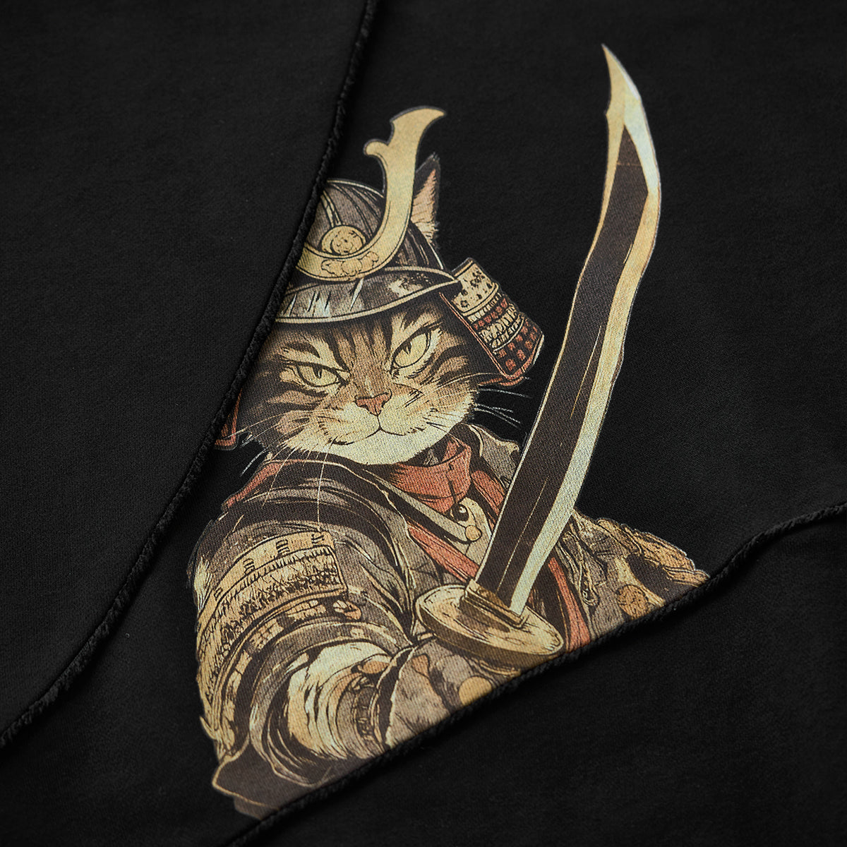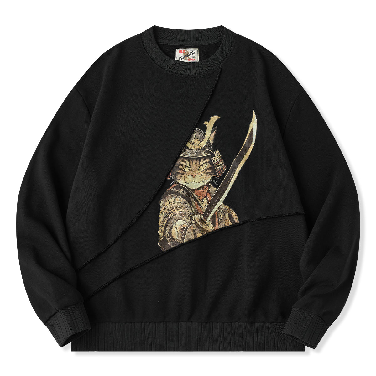 【사전예약】「검을 휘두르는 무사 고양이」프린트 프린지 풀오버 스웨트셔츠