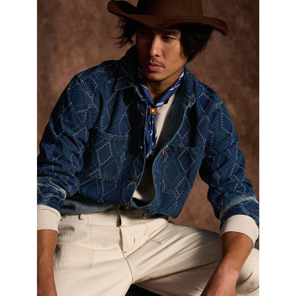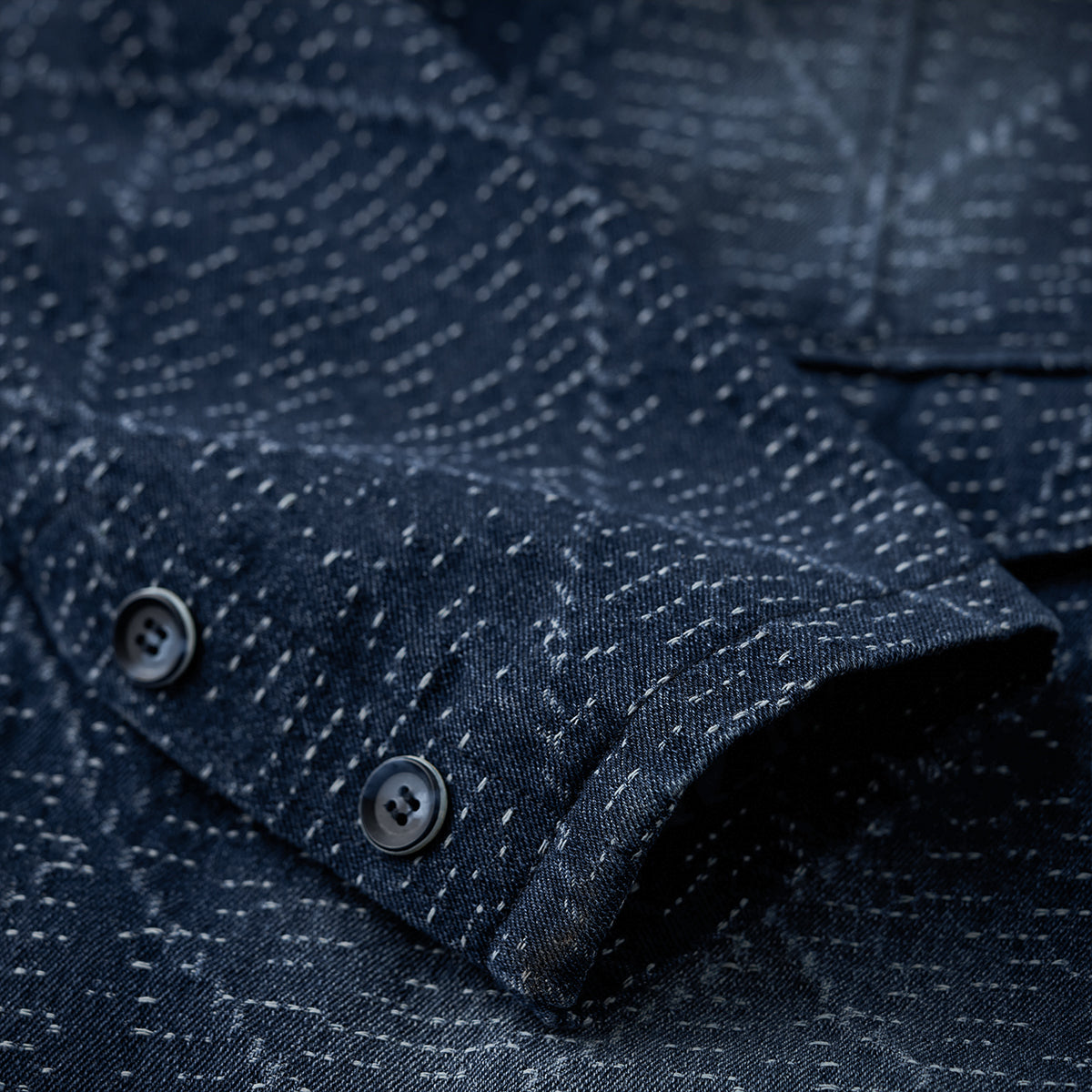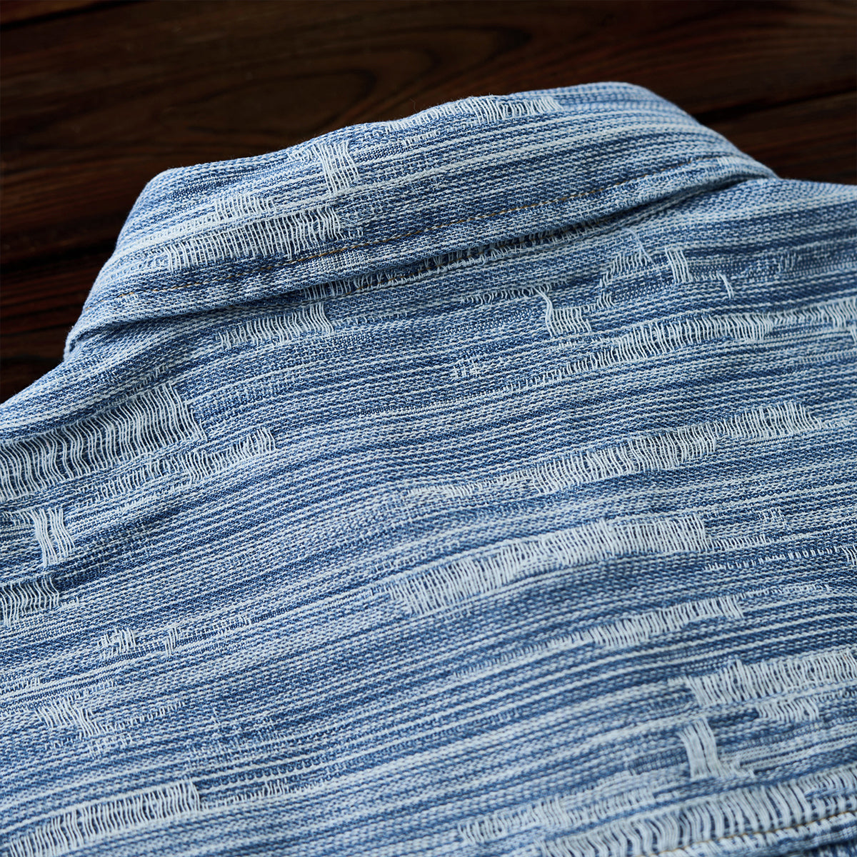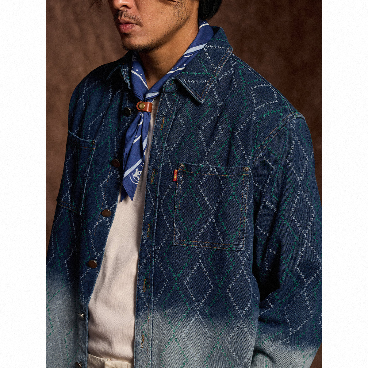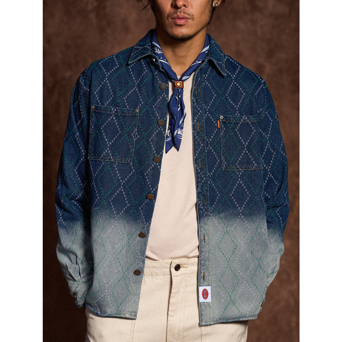 자카드 직조로 깊이감 있는 페이즐리 패턴과 그라데이션 컬러가 돋보이는 데님 셔츠로, 실용적인 2포켓과 재킷처럼도 활용 가능한 다용도 아이템입니다.