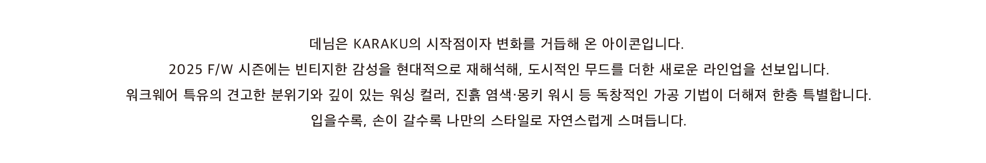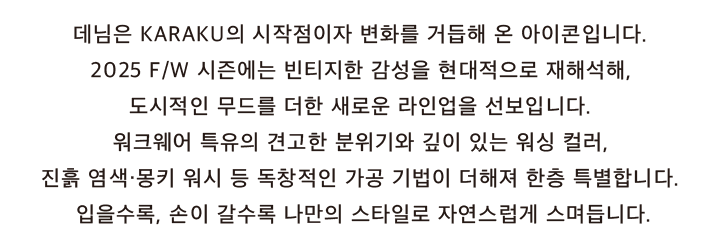 데님의 단단함과 리브 소재의 부드러움이 대비를 이루어, 시각적·촉각적으로 소재의 조화를 즐길 수 있는 자켓입니다.