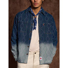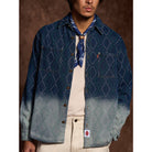 몽키 워싱 그라데이션과 다이아 자카드 패턴이 돋보이는 데님 셔츠로, 입체감과 빈티지 감성을 살리며, 심플한 코디에도 세련된 스타일을 연출합니다.