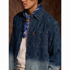 빈티지와 모던 감성을 동시에 연출하며, 자카드 패턴이 데님에서 돋보이도록 가공되어 평면적인 데님에 깊이감을 주고 고급스러운 분위기를 완성합니다.