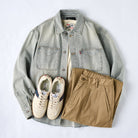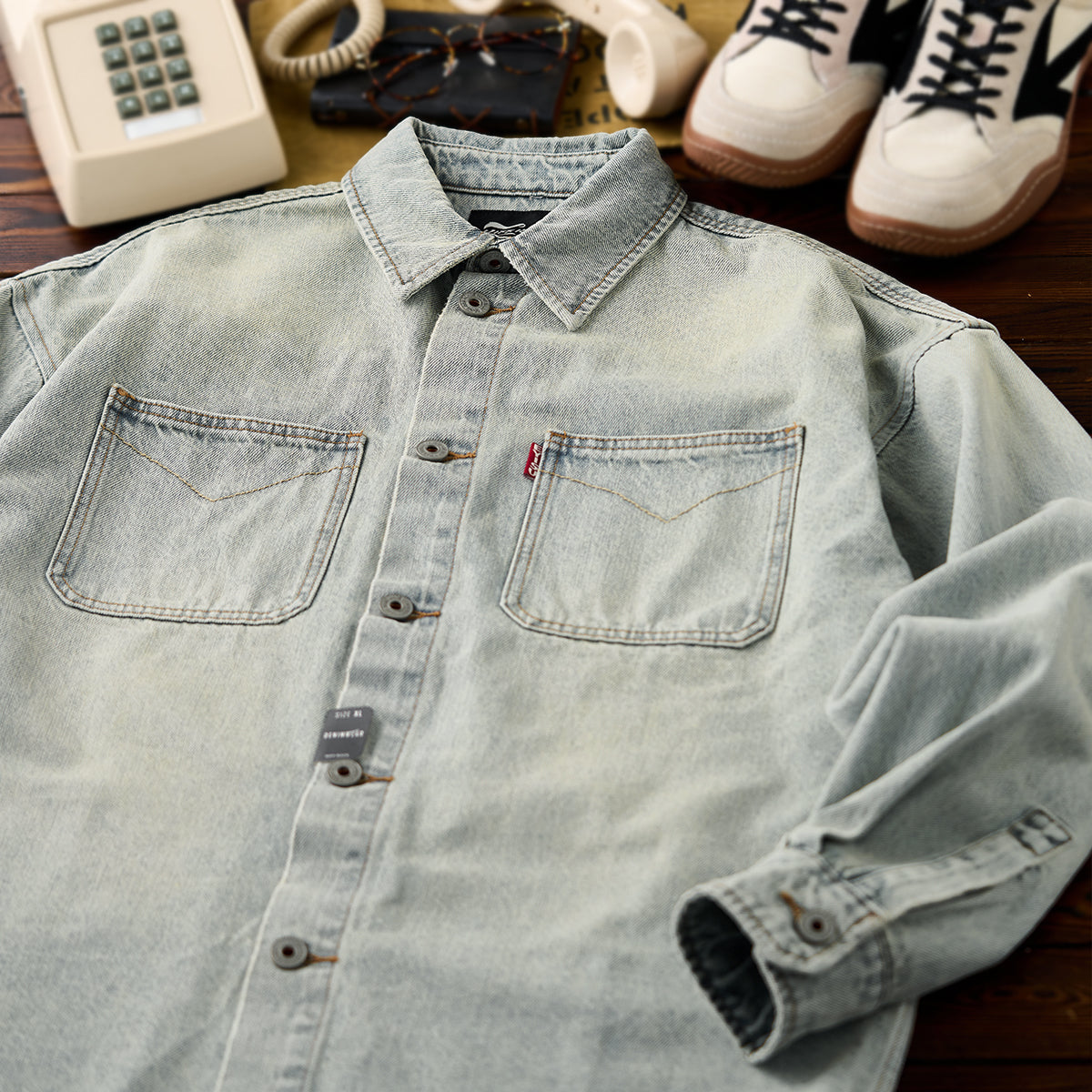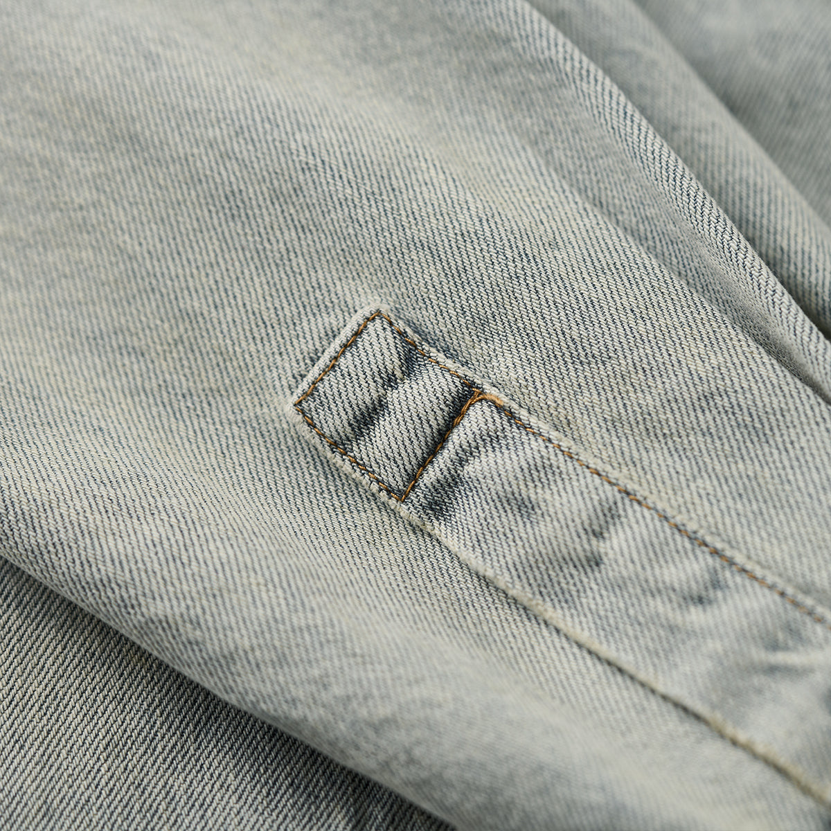 프린지 밑단과 워시드 가공으로 빈티지 무드를 살린 데님 워크 셔츠. 가볍고 활동성이 좋아 단독 착용은 물론 아우터로도 활용 가능한 만능 아이템입니다.