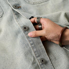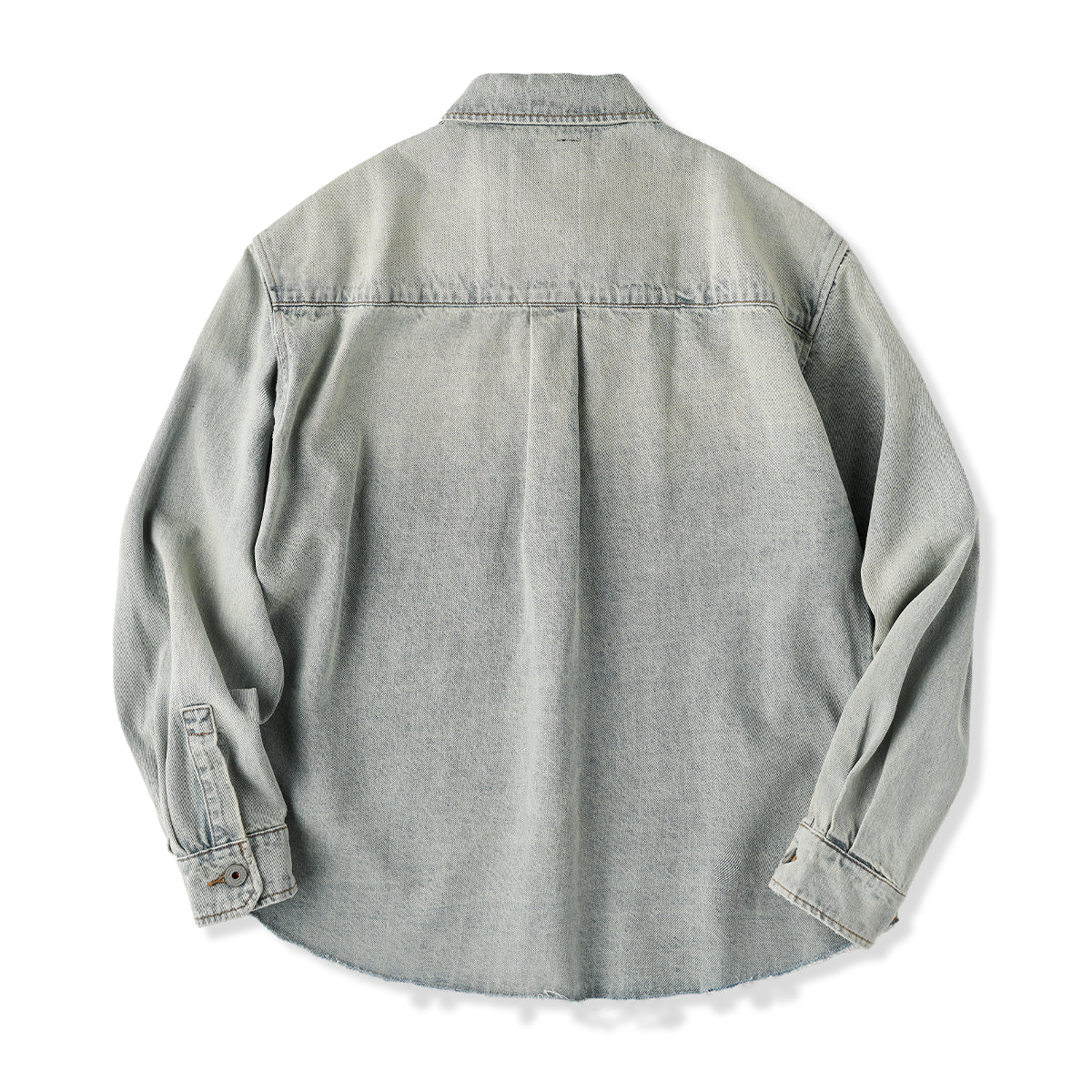 밑단 프린지 컷 & 워싱 가공 데님 워크 셔츠