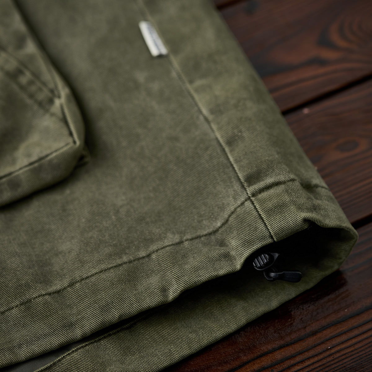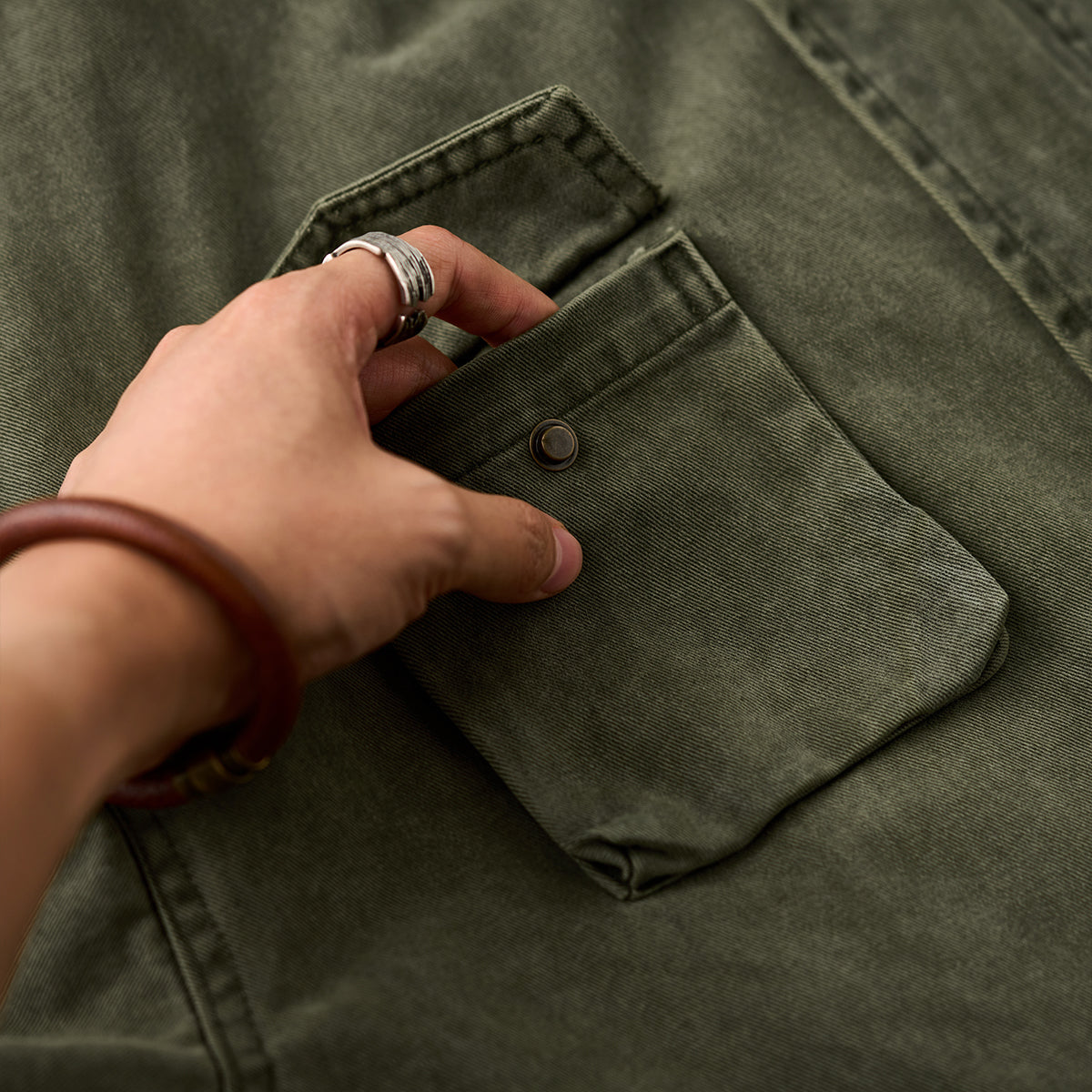 스탠드 칼라와 멀티 포켓으로 실용적이며, 밴딩 소매와 밑단 슬릿으로 활동성을 높인 캐주얼 자켓. 아미 그린·차콜 그레이의 차분한 컬러로 다양한 스타일에 매치 가능.