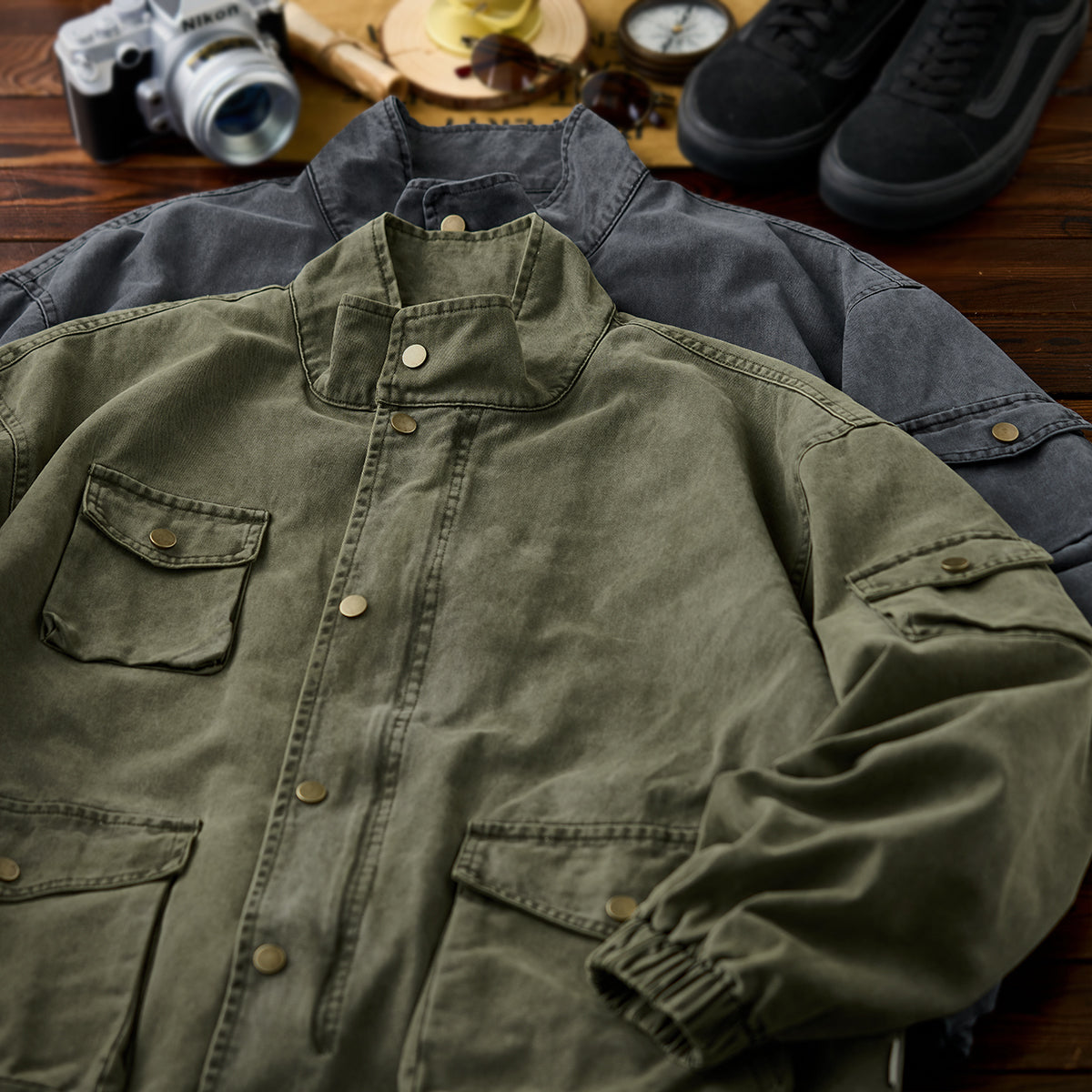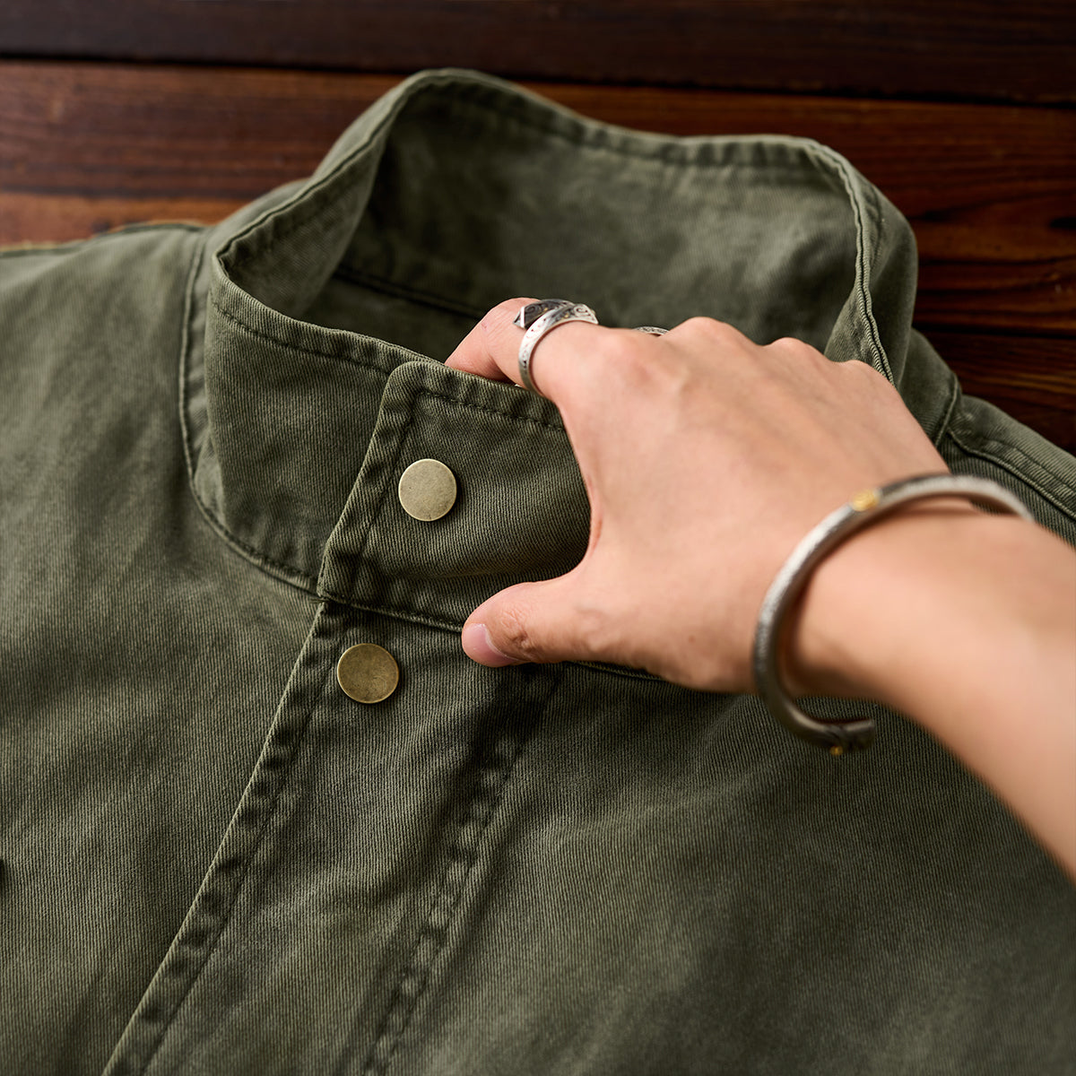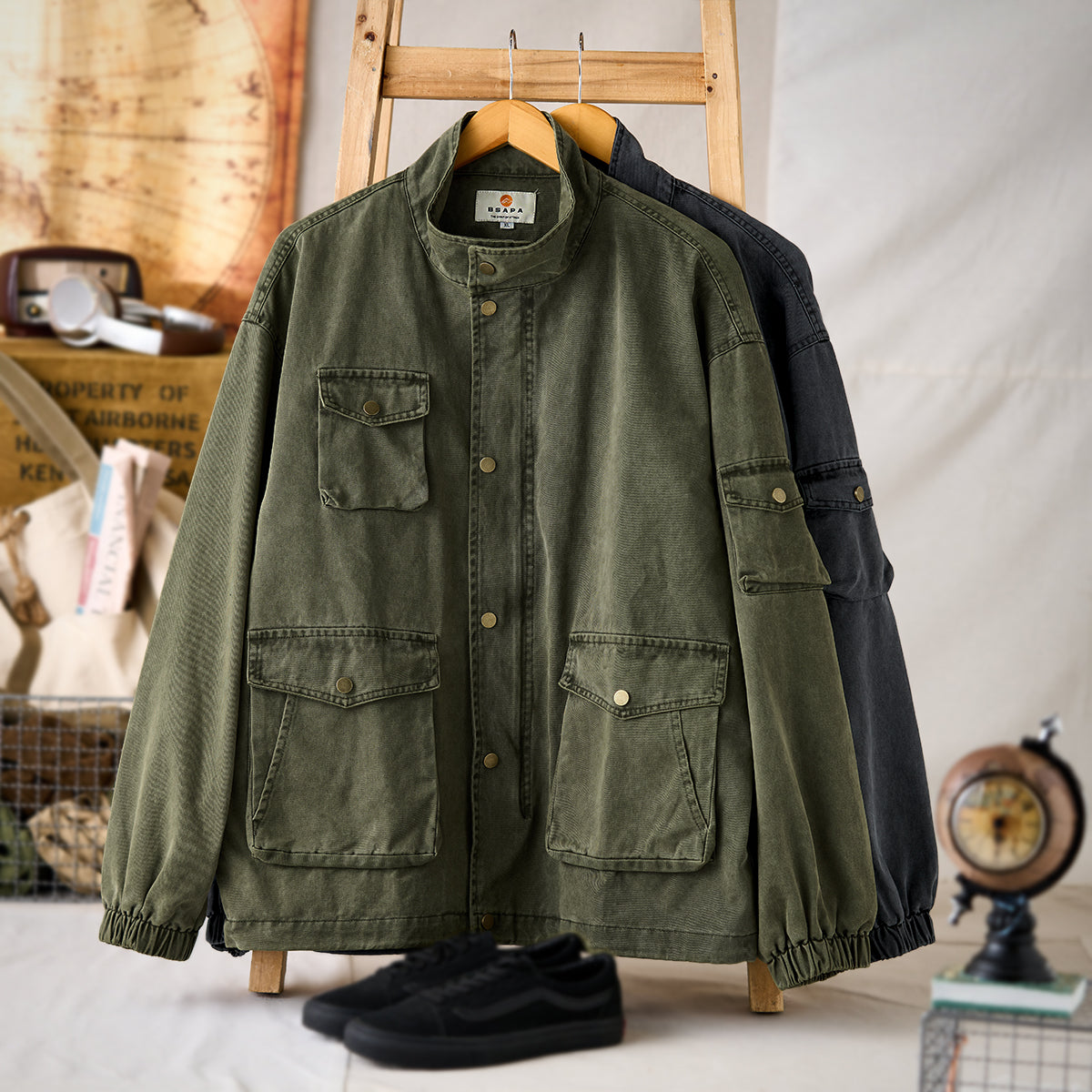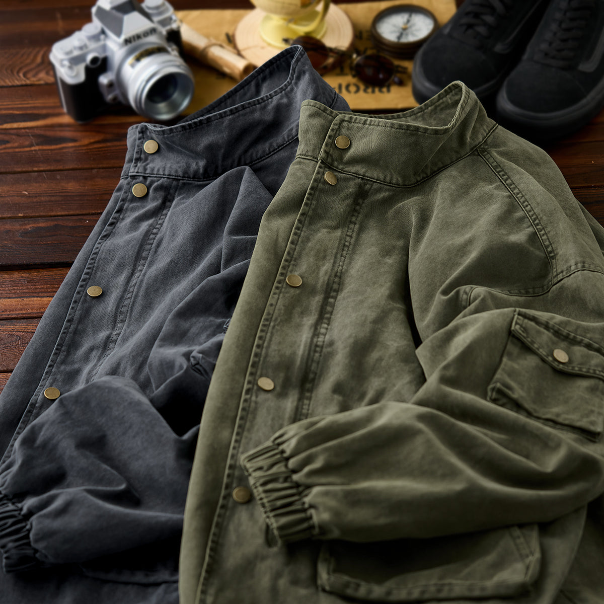 워싱 가공 멀티포켓 스탠드 칼라 자켓