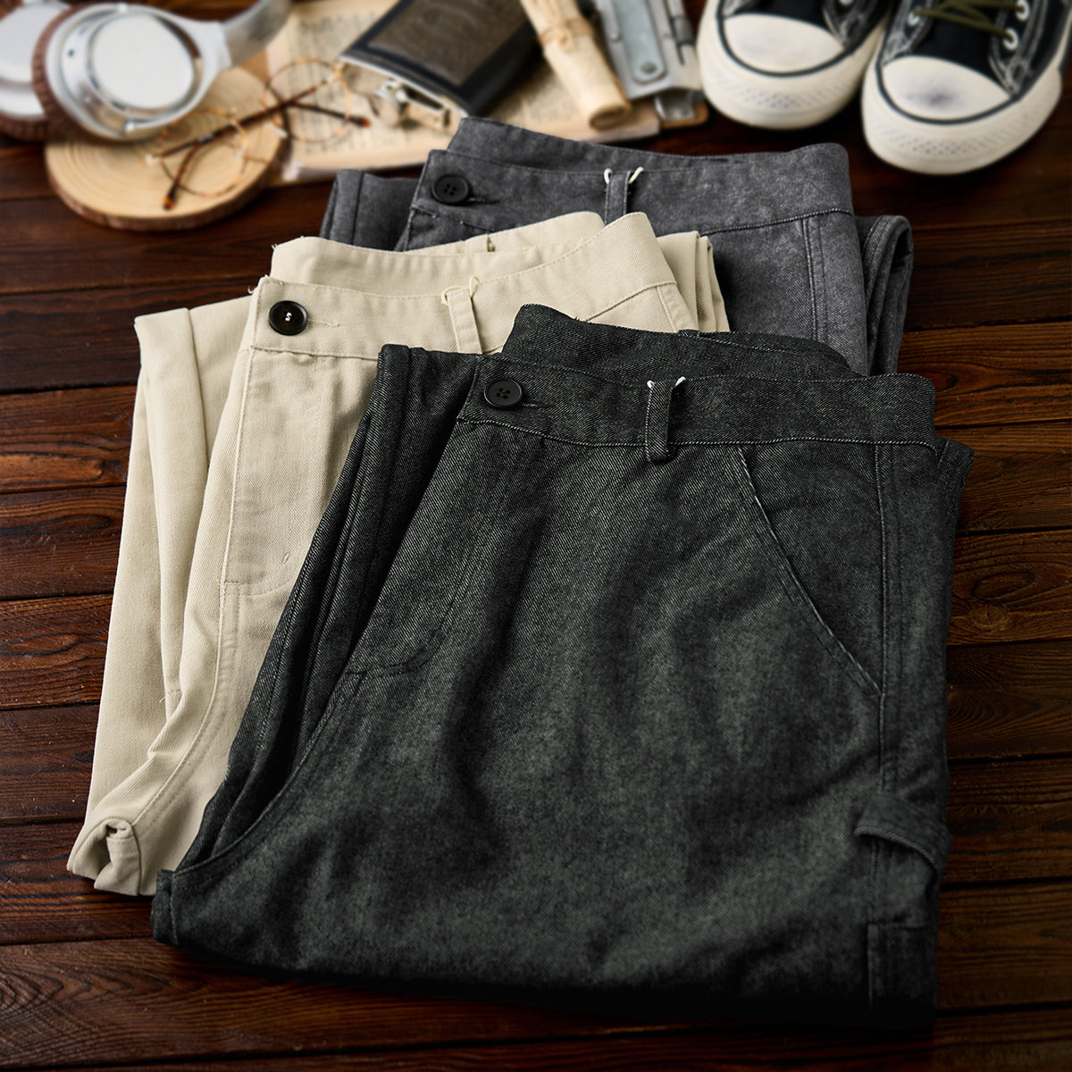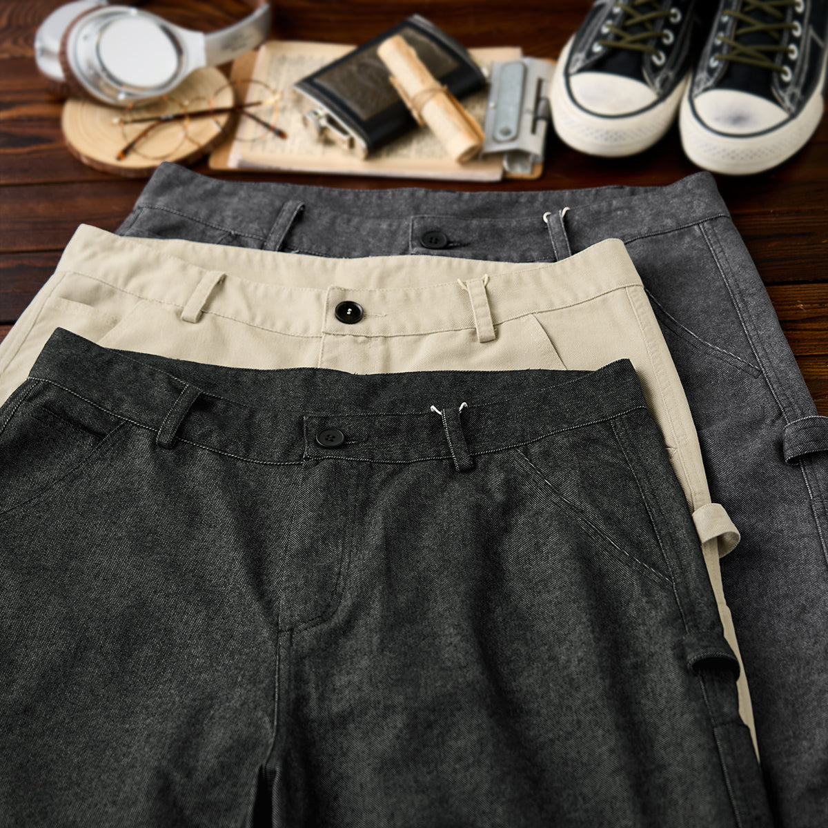 스니커즈나 샌들과 매치해 여유로운 캐주얼, 재킷이나 셔츠와 함께 모던한 스타일도 연출 가능합니다.