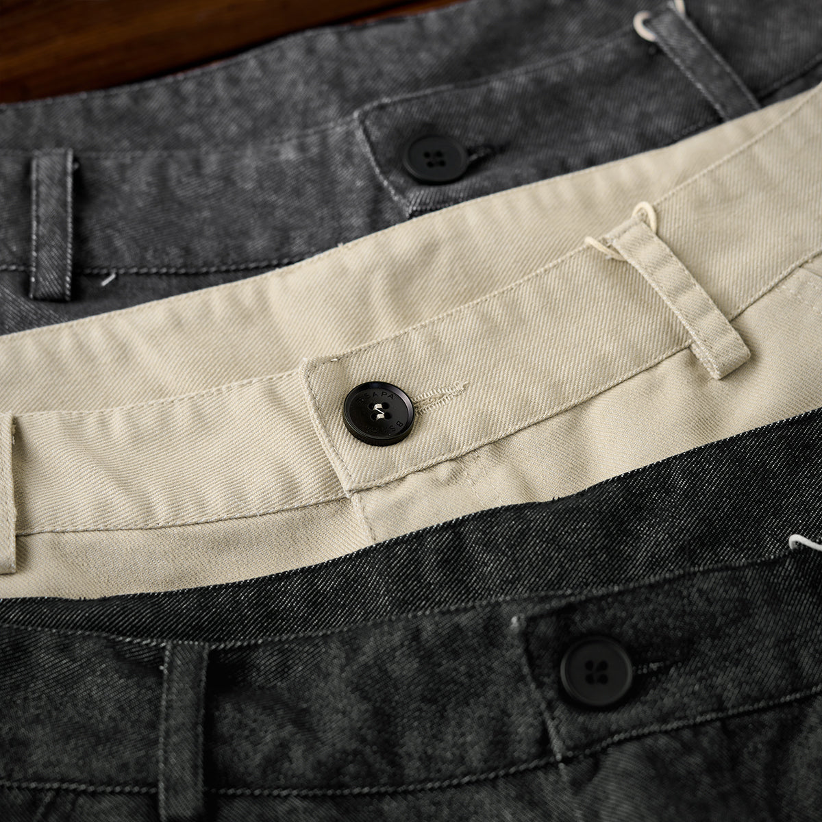 벨트 루프와 와이드 스트레이트 실루엣이 특징인 트윌 슬랙스. 내구성 있는 소재와 베이직 3색 구성으로 다양한 스타일링 가능.