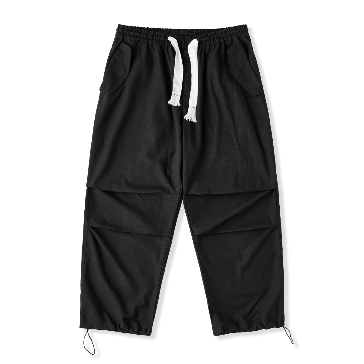 린넨 혼방 무릎 턱 디테일 패러슈트 와이드 이지 팬츠