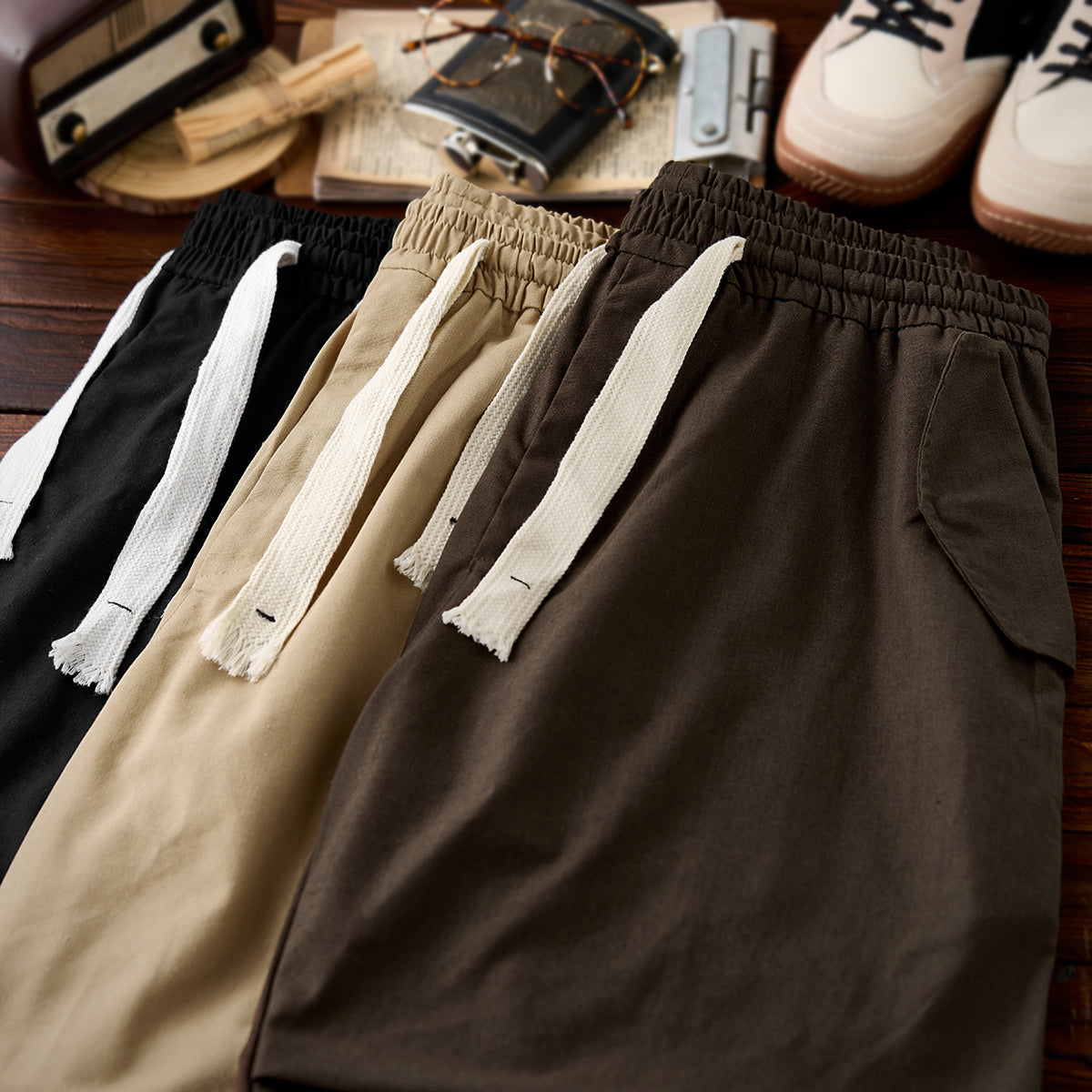 밀리터리 팬츠에서 영감을 받은 패러슈트 스타일로, 린넨 혼방 소재의 쾌적한 착용감과 자연스러운 질감이 돋보이는 와이드핏 이지 팬츠입니다.