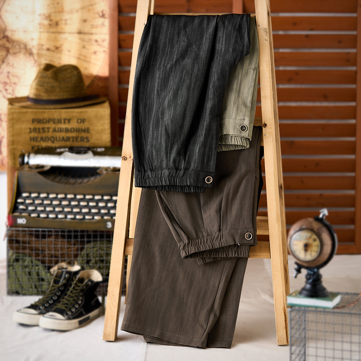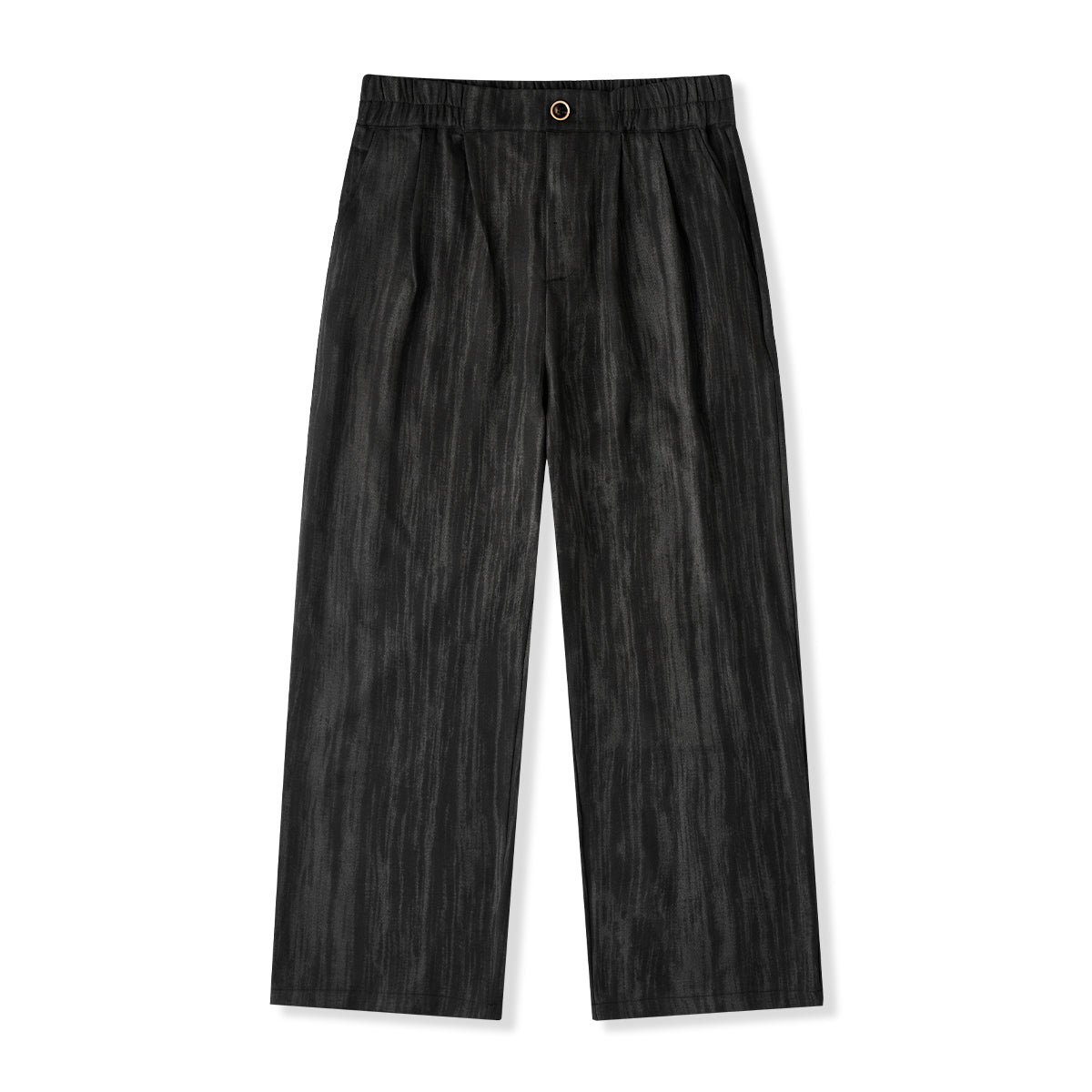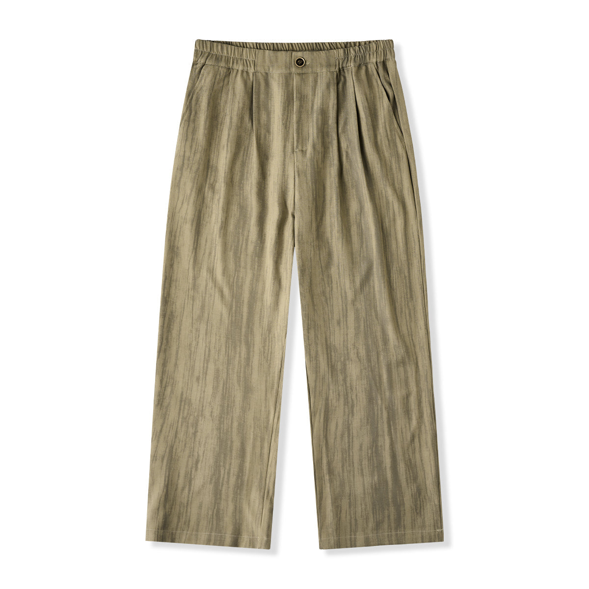 자연에서 영감을 받은 나무결 스트라이프 패턴이 특징으로, 일반적인 무지 슬랙스와 차별화된 디자인입니다.