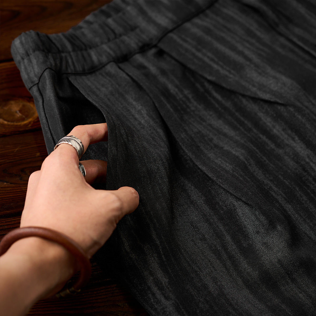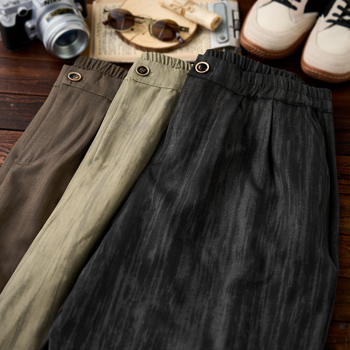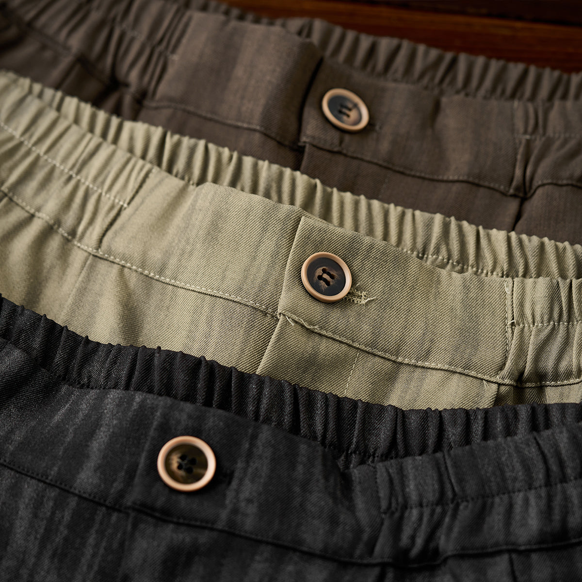 자연에서 영감을 받은 나무결 스트라이프 패턴이 특징으로, 일반적인 무지 슬랙스와 차별화된 디자인입니다.