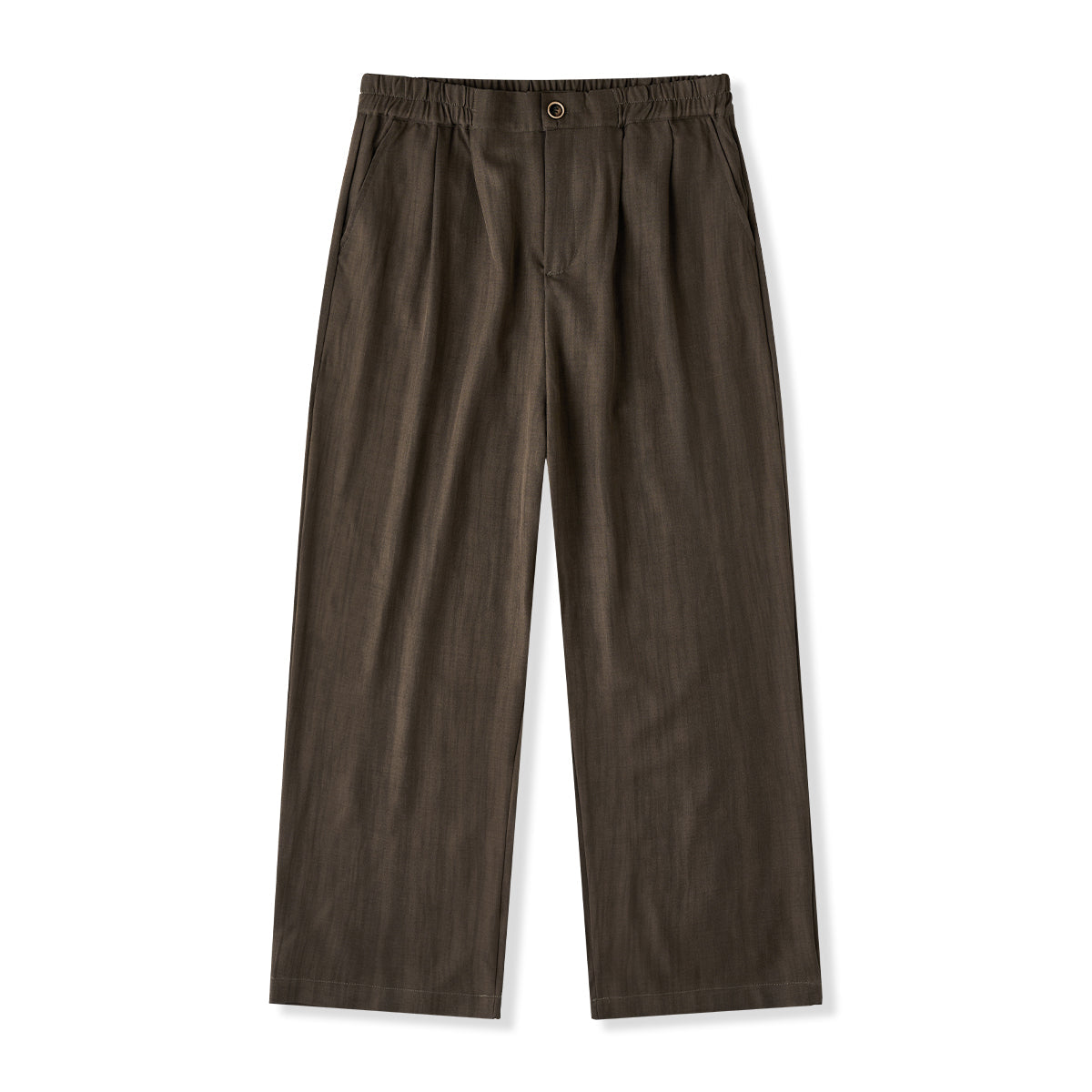 나무결 스트라이프 패턴이 돋보이는 스트레이트 핏 슬랙스로, 차분한 톤 속에서도 개성을 살린 편안한 릴랙스 스타일에 제격인 아이템입니다.