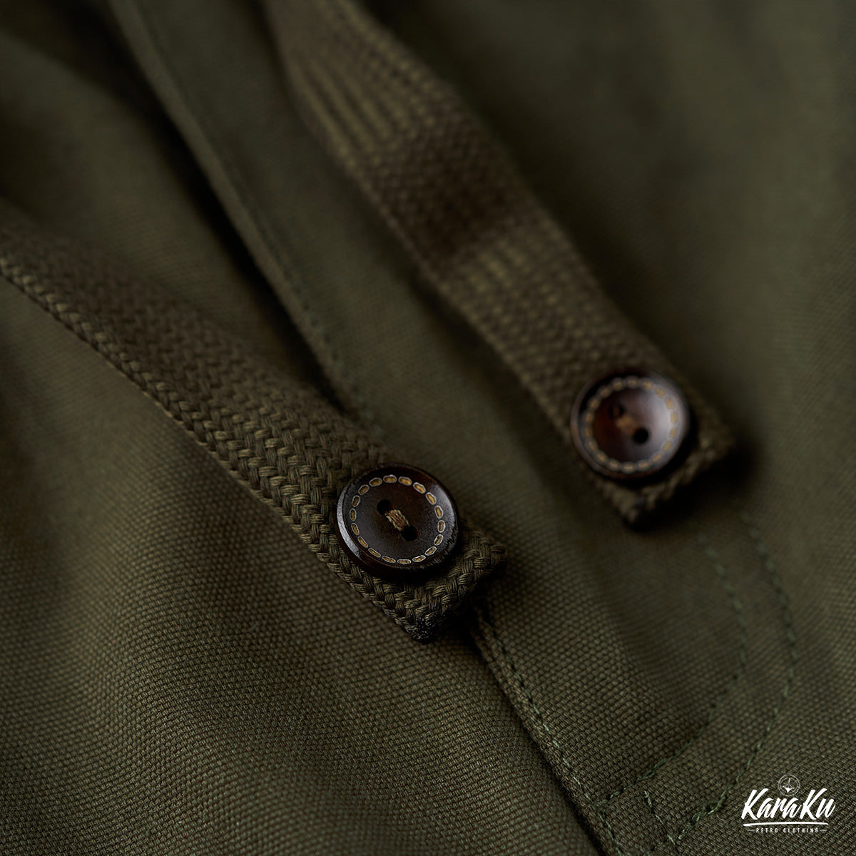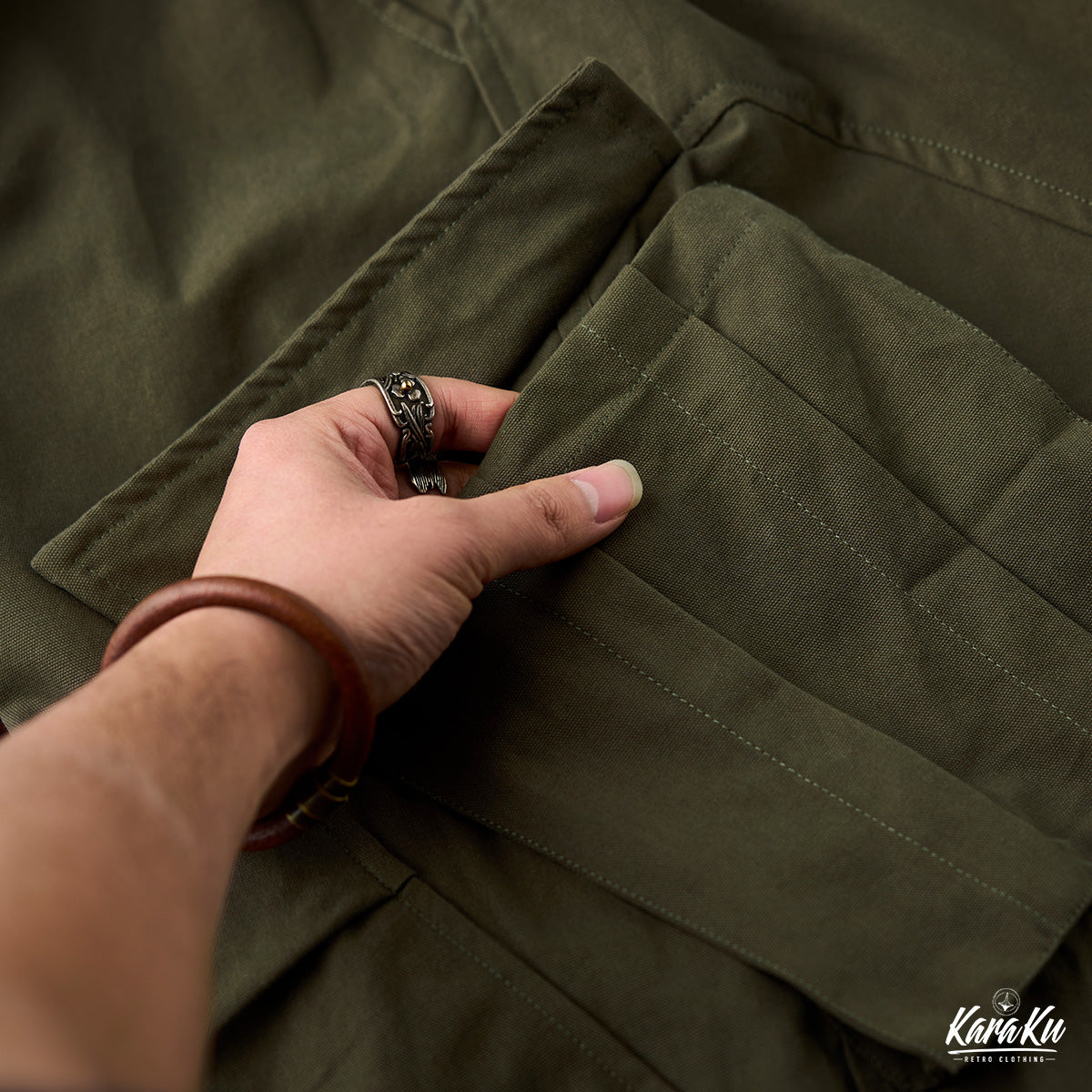 바깥쪽으로 통과된 끈을 사용해 원하는 핏감을 조절할 수 있습니다. 양쪽 빅플랩 포켓은 높은 수납력을 제공하며, 밑단 고무 처리는 바람을 막아 발밑을 깔끔하게 연출해 줍니다.