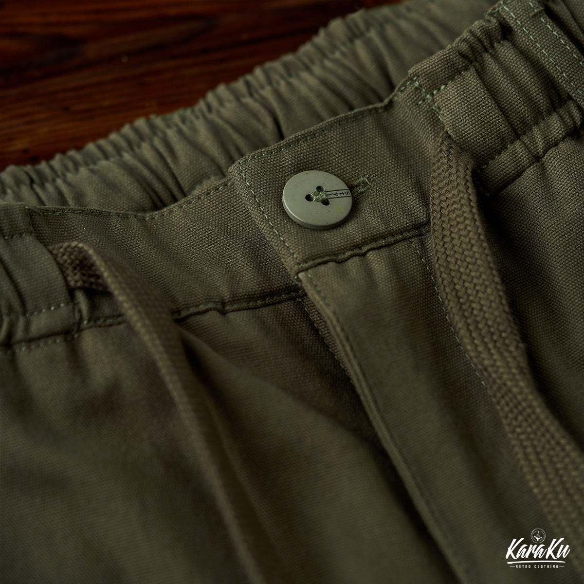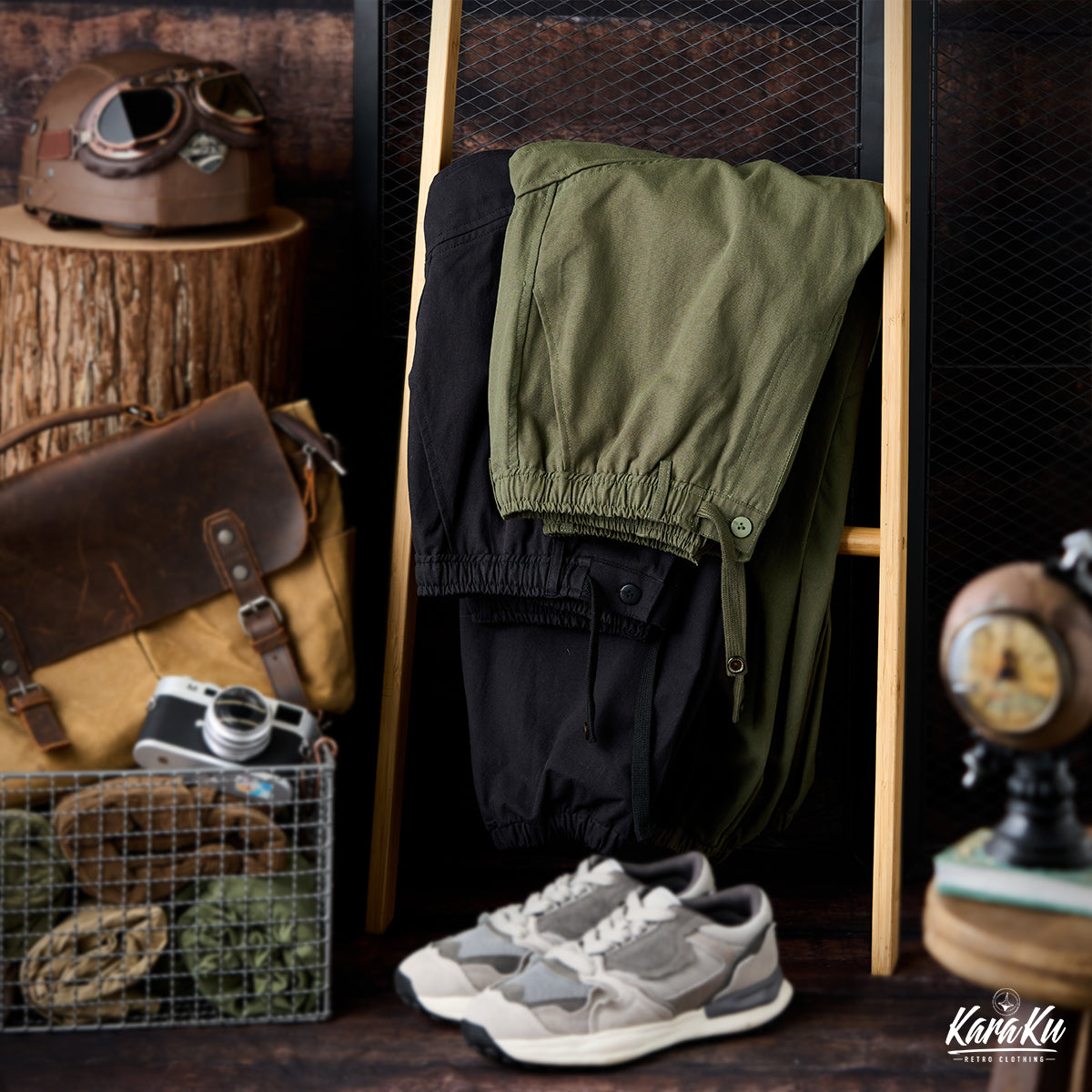 밀리터리 디테일을 가미한 캐주얼 팬츠로, 편안한 착용감과 실용성이 돋보이는 다용도 아이템입니다.