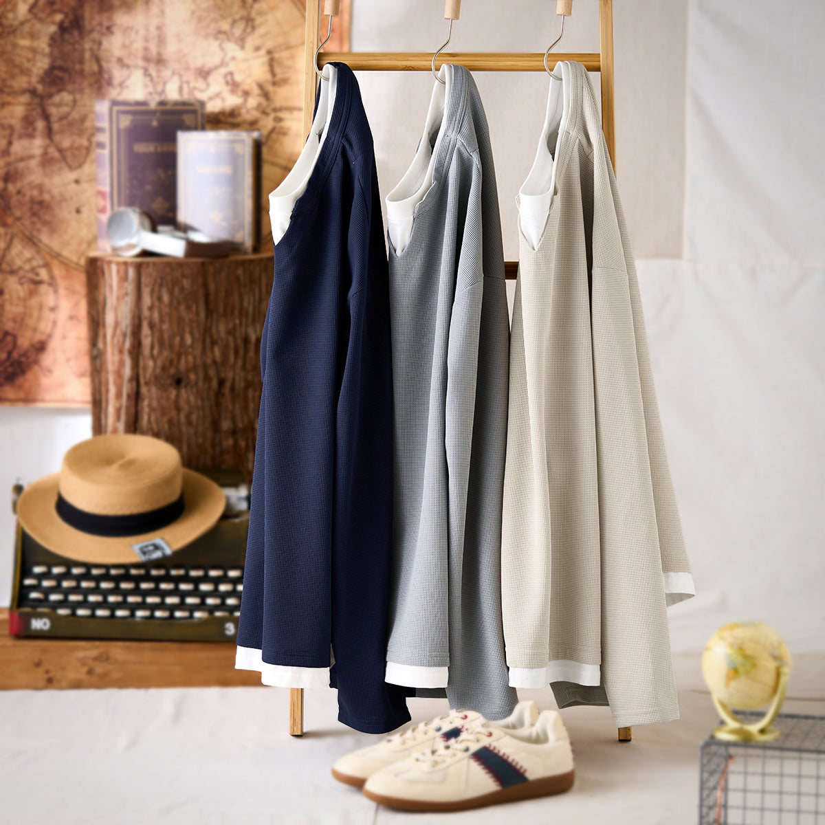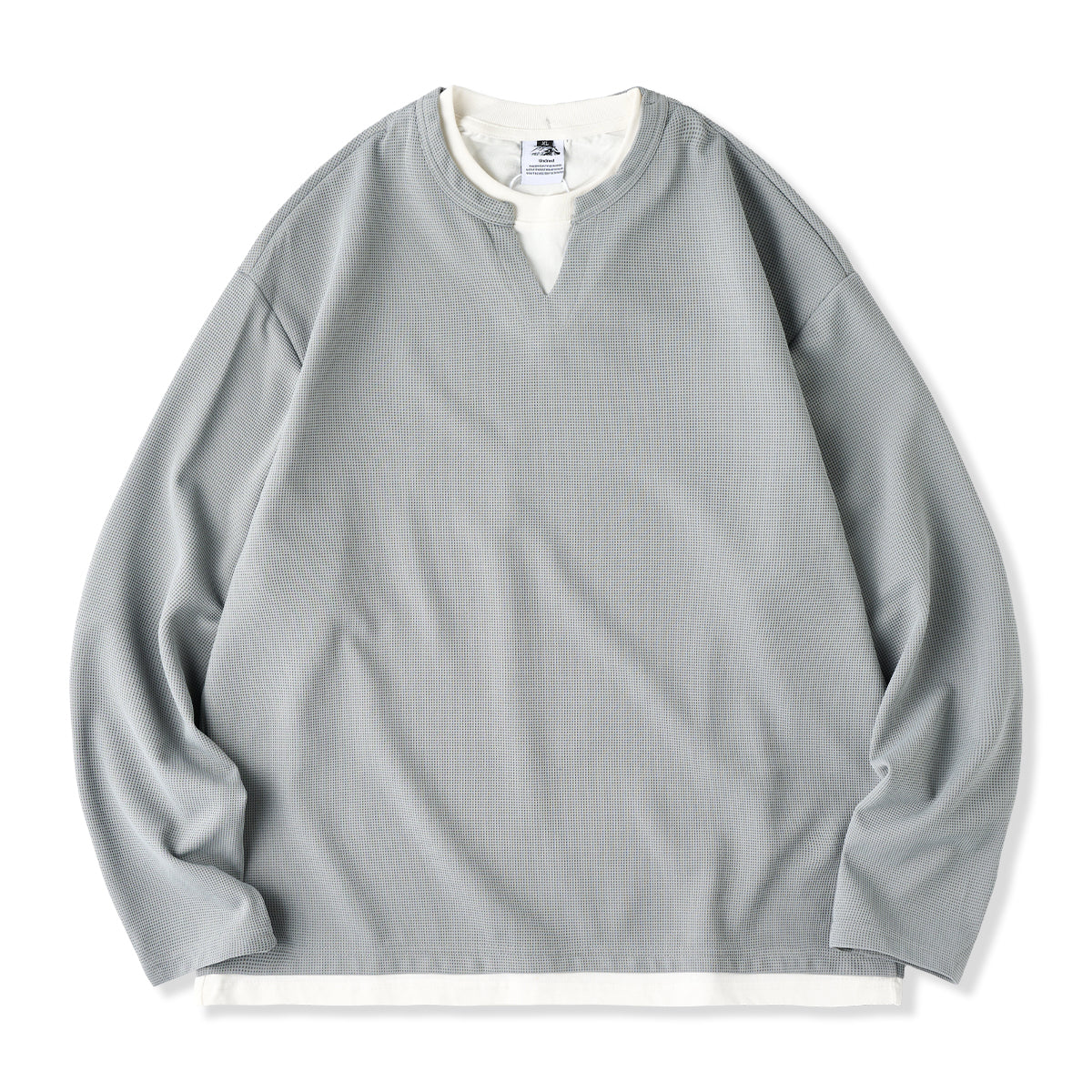 3컬러 페이크 레이어드 미니 와플 스웨트